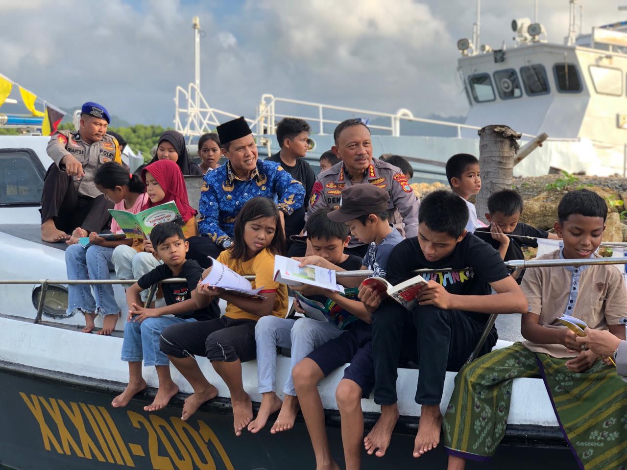 MAMUJU, RAKYATSULBAR.COM – Perpustakaan terapung Direktorat Polairud Polda Sulbar yang berada di pangkalan sandar Polairud Kecamatan Kalukku menjadi solusi yang tepat untuk meningkatkan minat baca anak-anak.