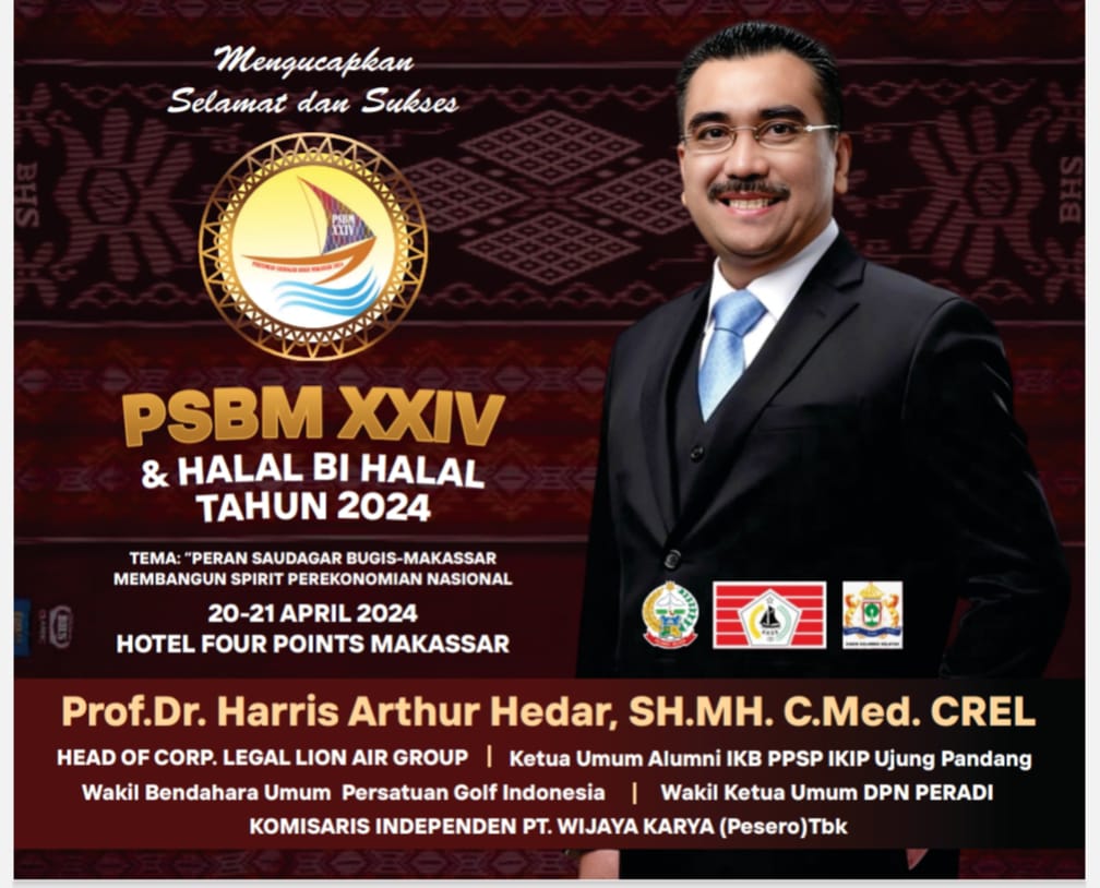 MAKASSAR, RAKYATSULBAR.COM – Prof Harris Arthur Hedar SH.MH.CREL mengucapkan selamat dan sukses atas terselenggaranya acara pertemuan Saudagar Muslim Makassar (PSBM) ke XXIV 2024.