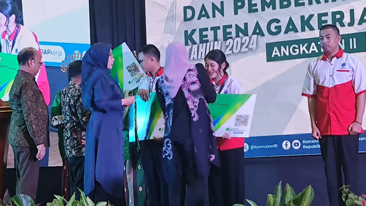 Selama acara, dilakukan penyerahan simbolis Kartu BPJS Ketenagakerjaan kepada para siswa pelatihan oleh Menteri Tenaga Kerja serta Kepala Bidang Kepesertaan BPJS Ketenagakerjaan.
