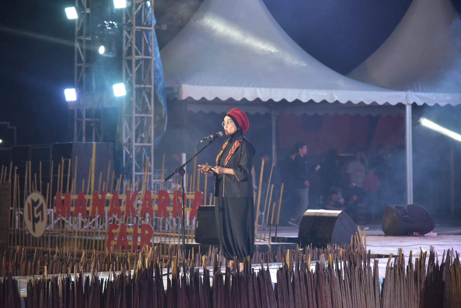 Sebelum inti dari sambutan, iapun sempat memberikan pantun kepada mayarakat Mamuju yakni, “Nikmati Senja di Pantai Manakarra, Sunggu Memikat Hati indah Pemandangan, Selamat Malam Para Hadirin Sekalian, Bersama Kita Bangkitkan”.