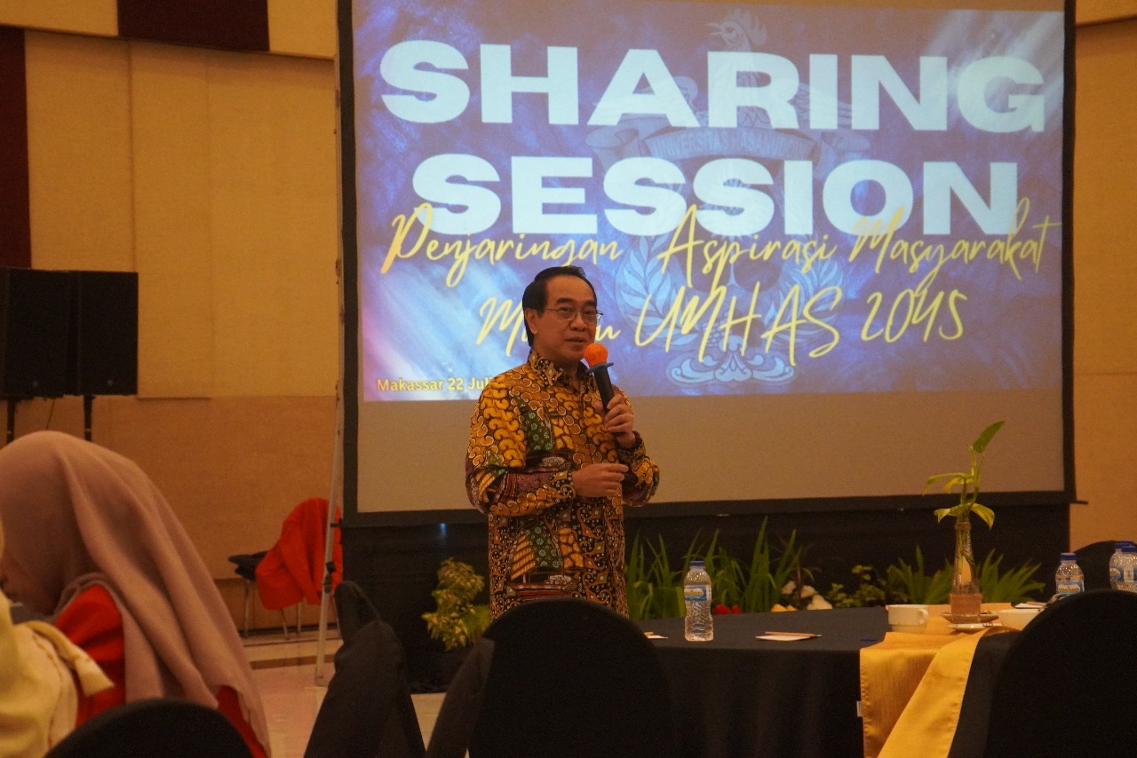 Terkait sharing session dilaksanakan dengan tujuan merumuskan bentuk Unhas 2045, tantangan dan kendala dalam upaya mencapainya, serta strategi dan sumberdaya yang dibutuhkan untuk mewujudkan impian tentang Unhas 2045.