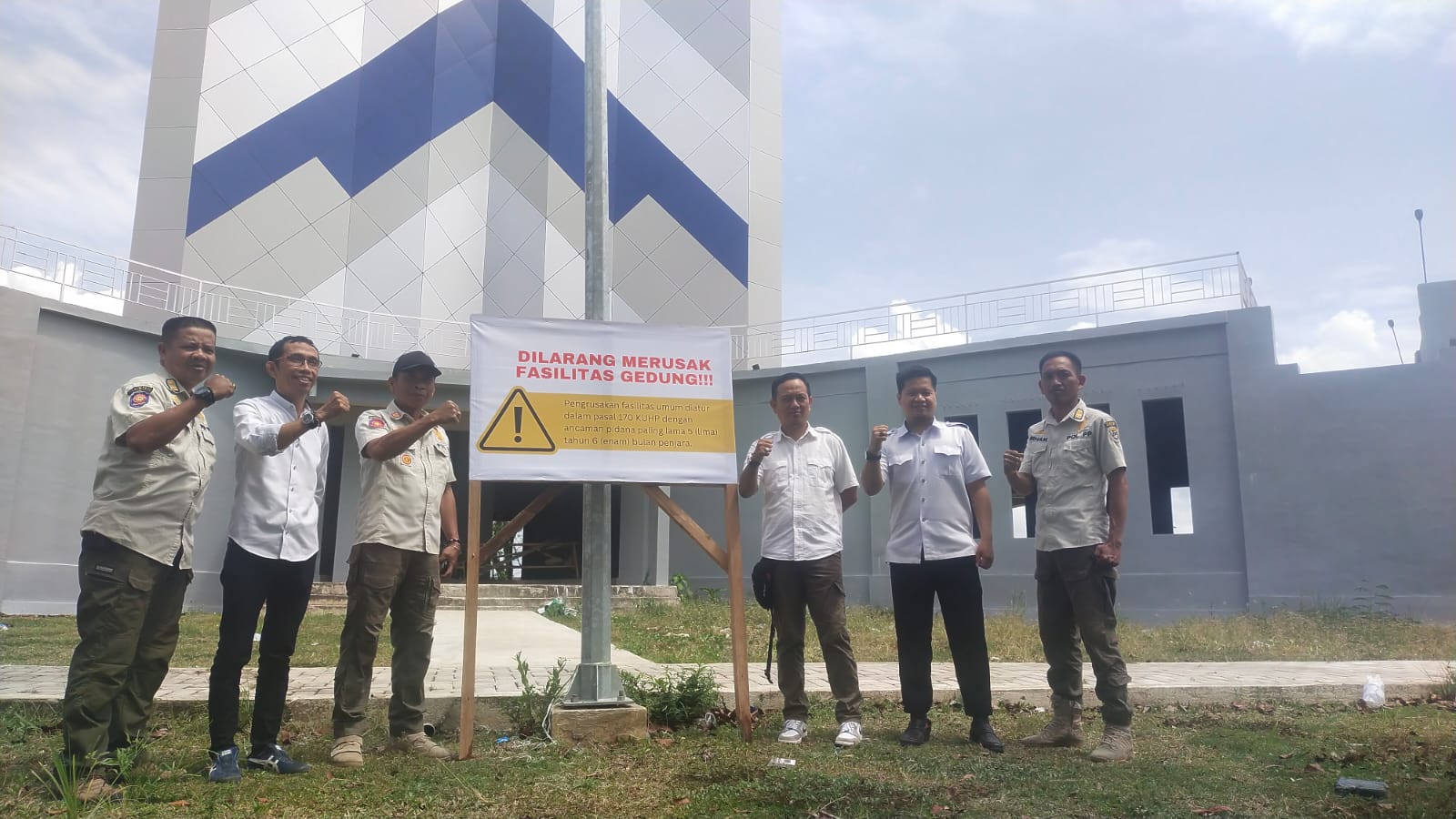“Kami lakukan pemasangan plang peringatan ini sebagai respon dan tindak lanjut atas informasi yang kami dapatkan kemarin terkait adanya pengrusakan gedung Manakarra tower,”terangnya.