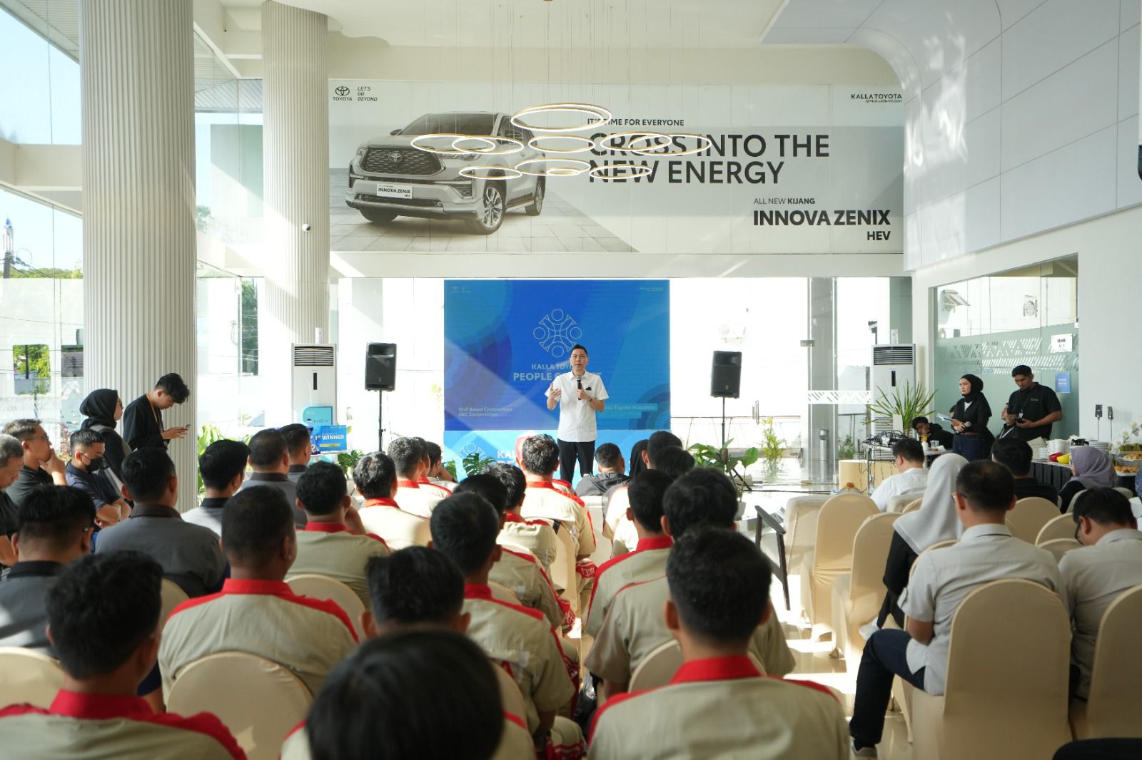 dalam sambutannya, mengatakan bahwa hanya mereka yang memiliki jiwa petarung dan skill yang luar biasa yang bisa lolos menjadi perwakilan Kalla Toyota di Dealer People Contest 2024.