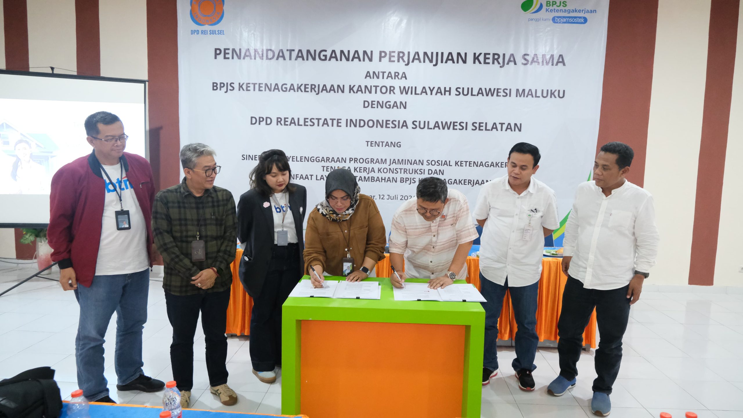 MAKASSAR, RAKYATSULBAR.COM –– BPJS Ketenagakerjaan dan Real Estate Indonesia (REI) melaksanakan penandatanganan Kerjasama tentang sinergi penyelenggaraan Program Jaminan Sosial Ketenagakerjaan Tenaga Kerja Konstruksi dan Manfaat Layanan Tambahan.