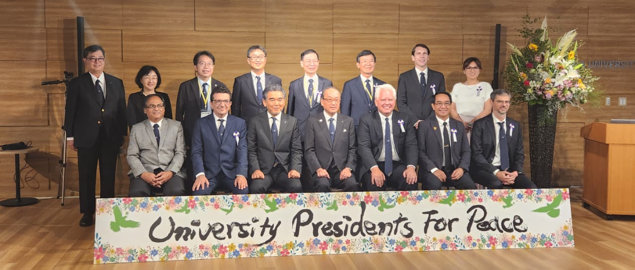 Dalam sambutannya, Prof. Ochi menegaskan urgensi bagi universitas di seluruh dunia untuk memfokuskan riset dan inovasi dalam mewujudkan perdamaian dunia yang langgeng.