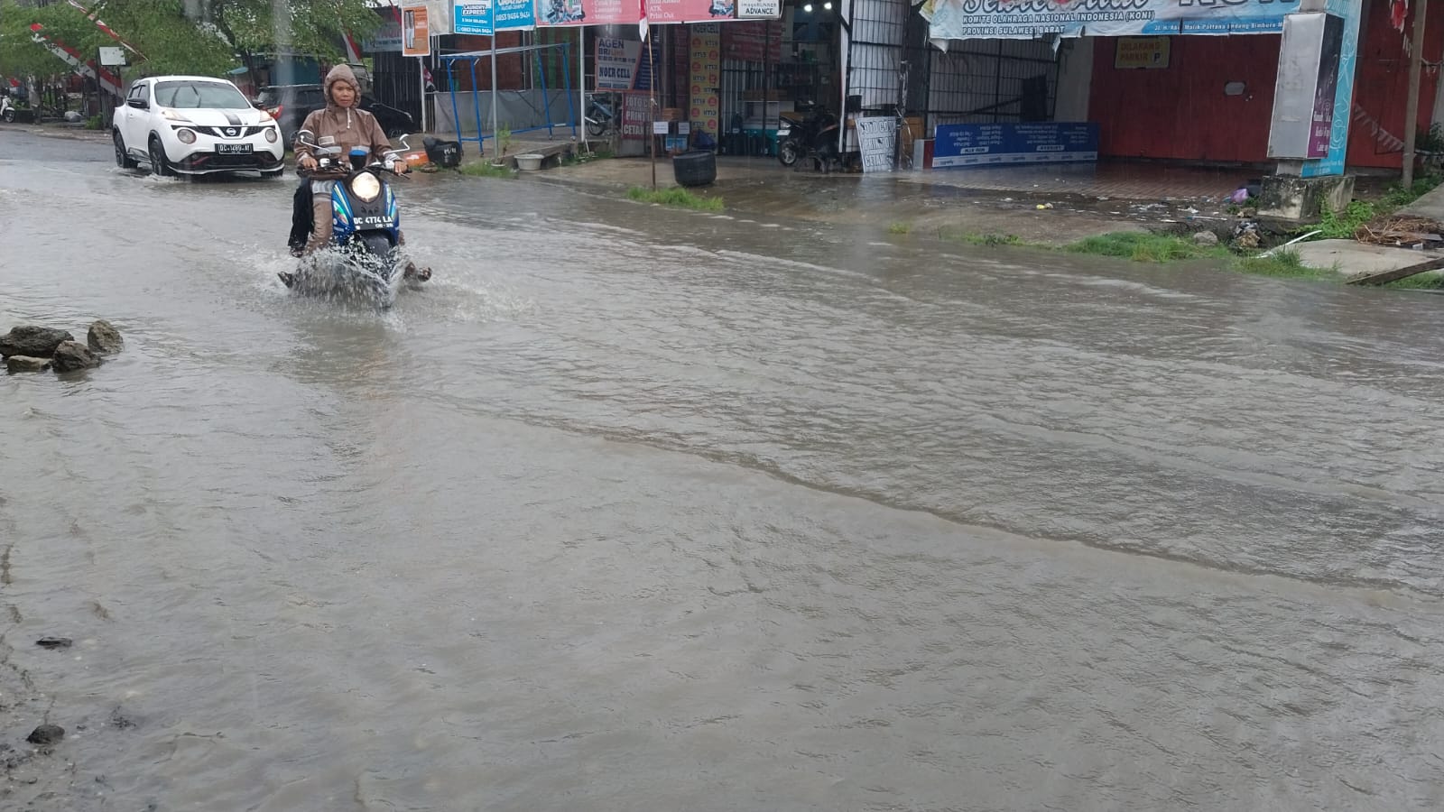 Sementara itu, pengendara sepeda motor yang nekat menerobos banjir agar kiranya dapat berhati-hati, kerena jalan tersebut terdapat lubang yang cukup parah.