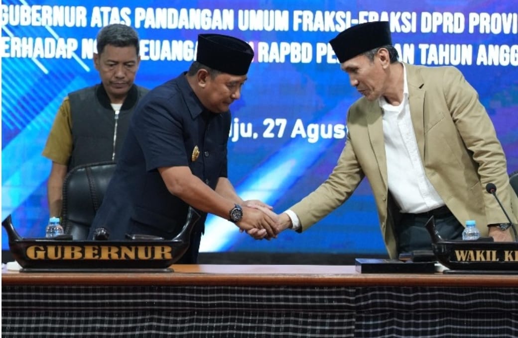 MAMUJU, RAKYATSULBAR.COM — DPRD Sulbar menerima Jawaban Pj Gubernur Sulawesi Barat, Bahtiar Baharuddin terhadap Pemandangan Umum Fraksi-Fraksi DPRD atas Nota Keuangan Ranperda APBD Perubahan 2024, melalui sidang Paripurna yang berlangsung di DPRD Sulbar, Selasa (27/8/24).