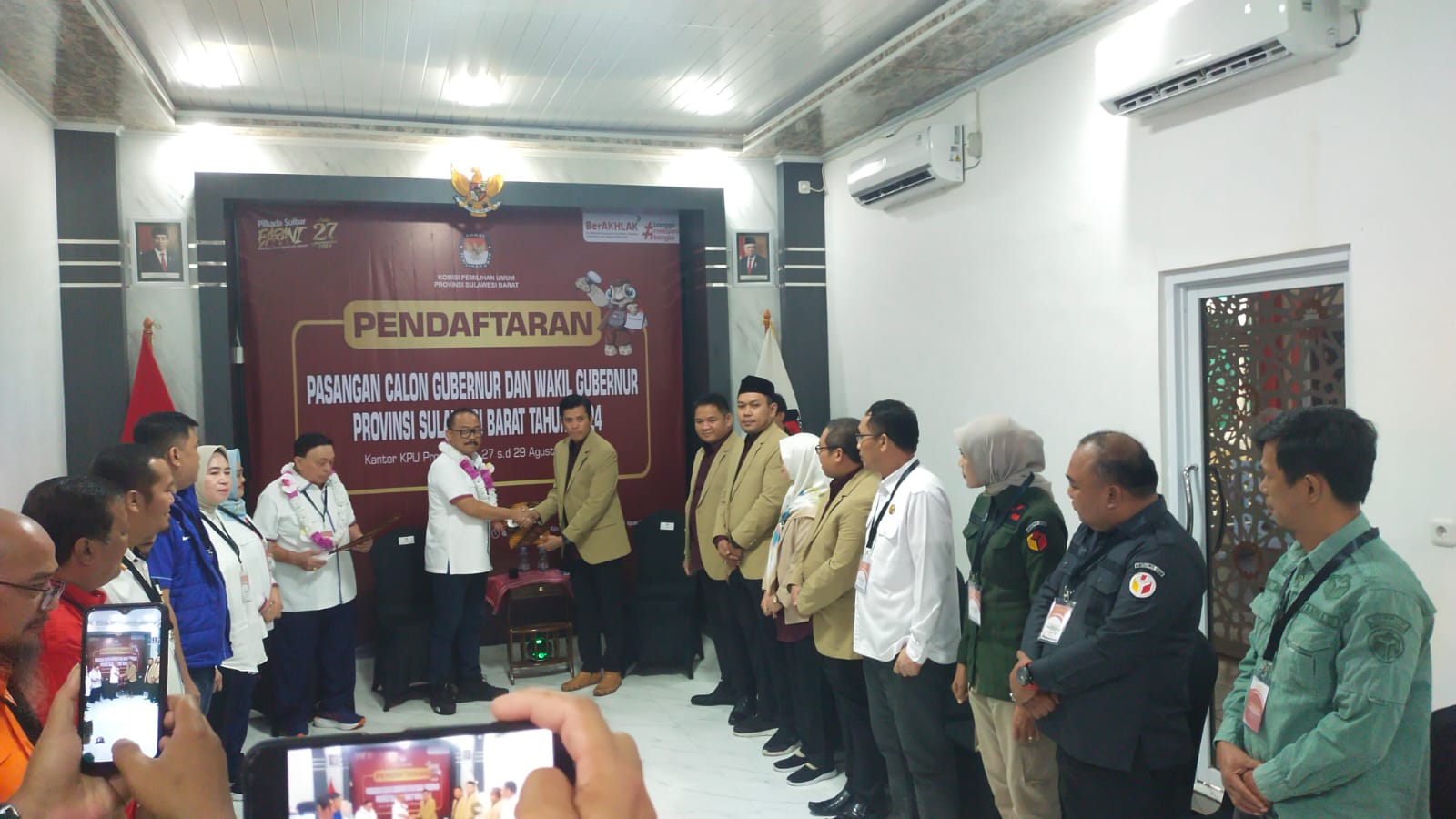 Pasangan bakal calon gubernur dan wakil gubernur Sulbar tiba di KPU Sulbar sekira pukul 10: 30 WITA, dengan didampingi para partai koalisi pasangan tersebut, serta para simpatisan.