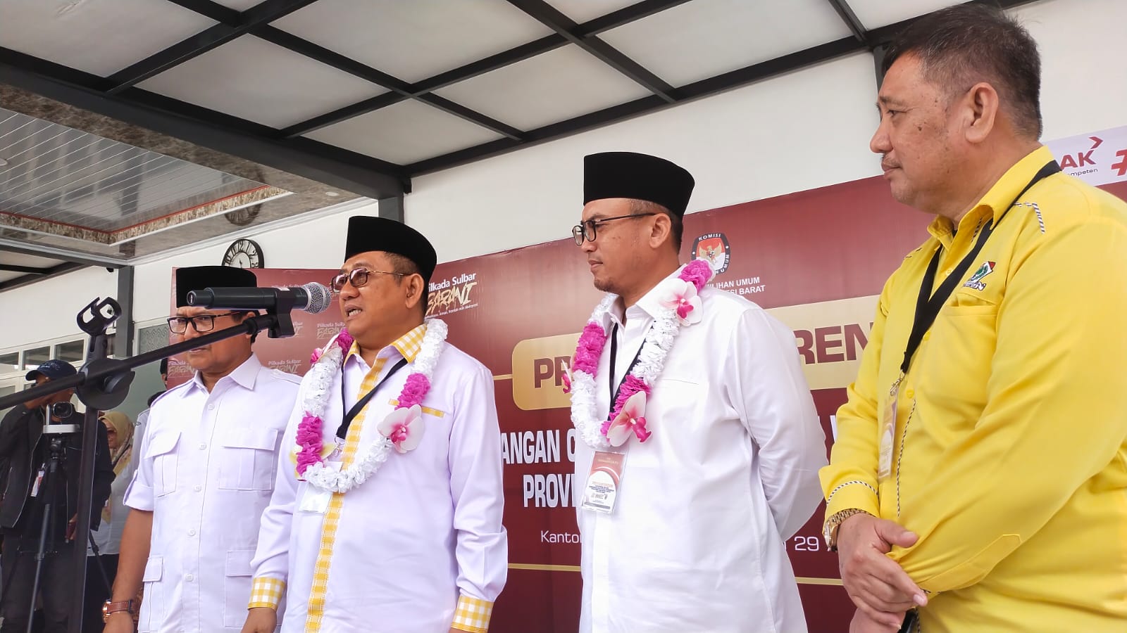 Usai melakukan penyerahan berkas ke KPU Sulbar, pasangan ABM-Arwan Aras ini langsung melakukan konferensi pers di halam kantor KPU Sulbar.
