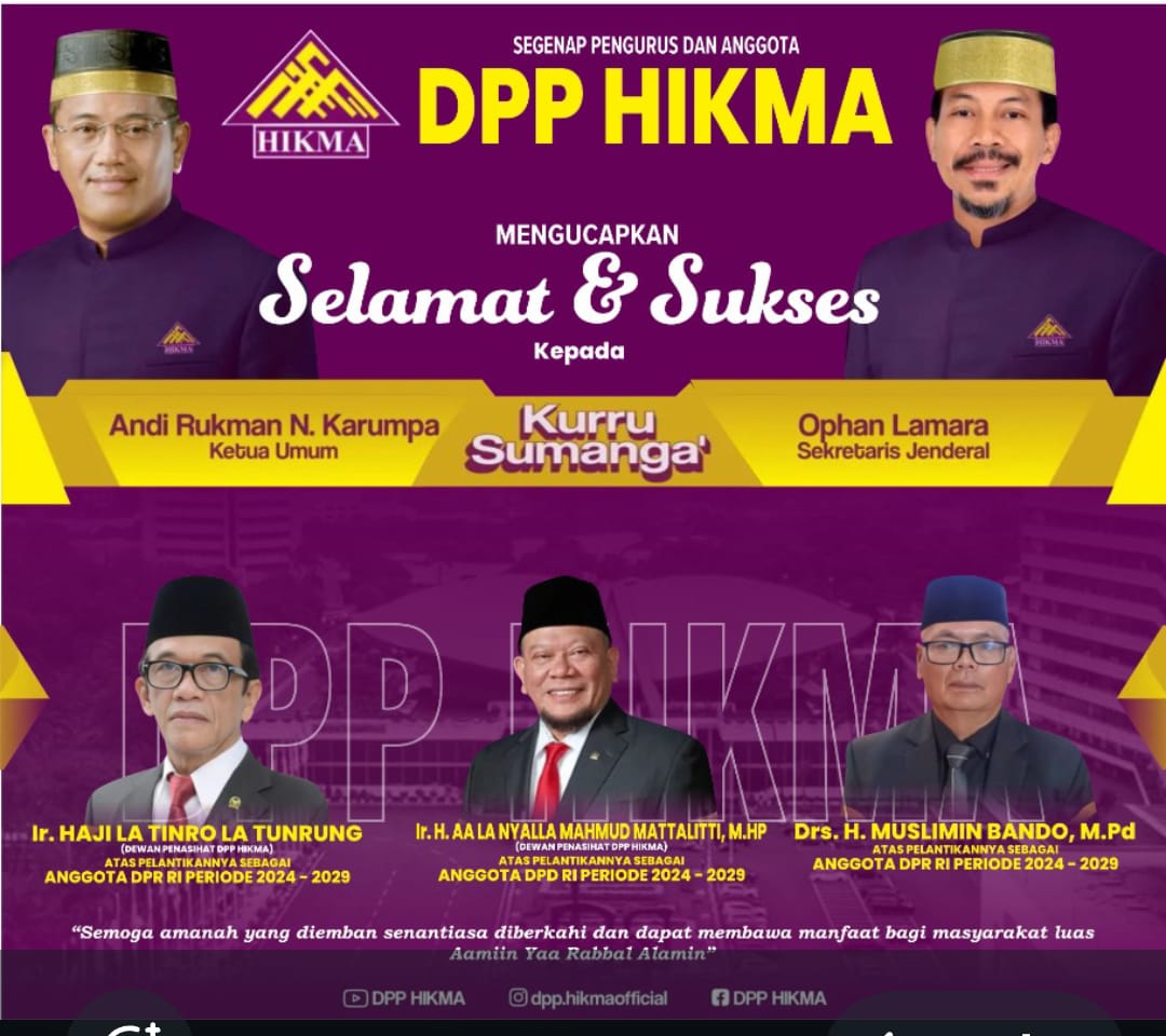JAKARTA, RAKYATSULBAR.COM — Ketua Umum DPP Himpunan Keluarga Massenrempulu (HIKMA), Andi Rukman Karumpa, menyambut baik pelantikan anggota legislatif periode baru.
