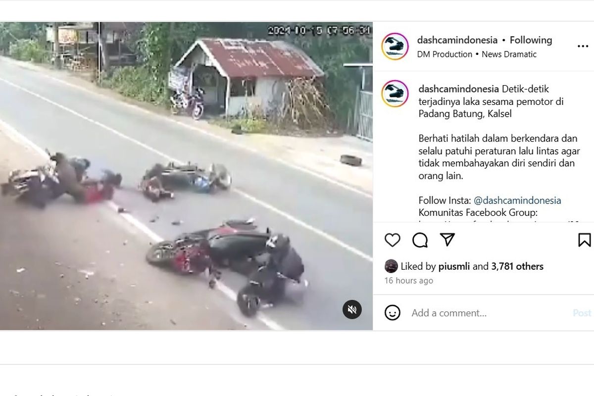 Tindakan ini tidak hanya membahayakan diri sendiri, tetapi juga membahayakan pengguna jalan lainnya. Salah satu kejadian terekam dalam video yang diunggah @dashcamindonesia di Instagram, Rabu (16/10/2024). Tampak motor yang pindah arah, lalu ditabrak oleh motor dari arah belakang. Belum selesai di situ, sebuah motor dari arah berlawanan menghajar motor yang sudah jatuh, dan terpental ke arah depan.