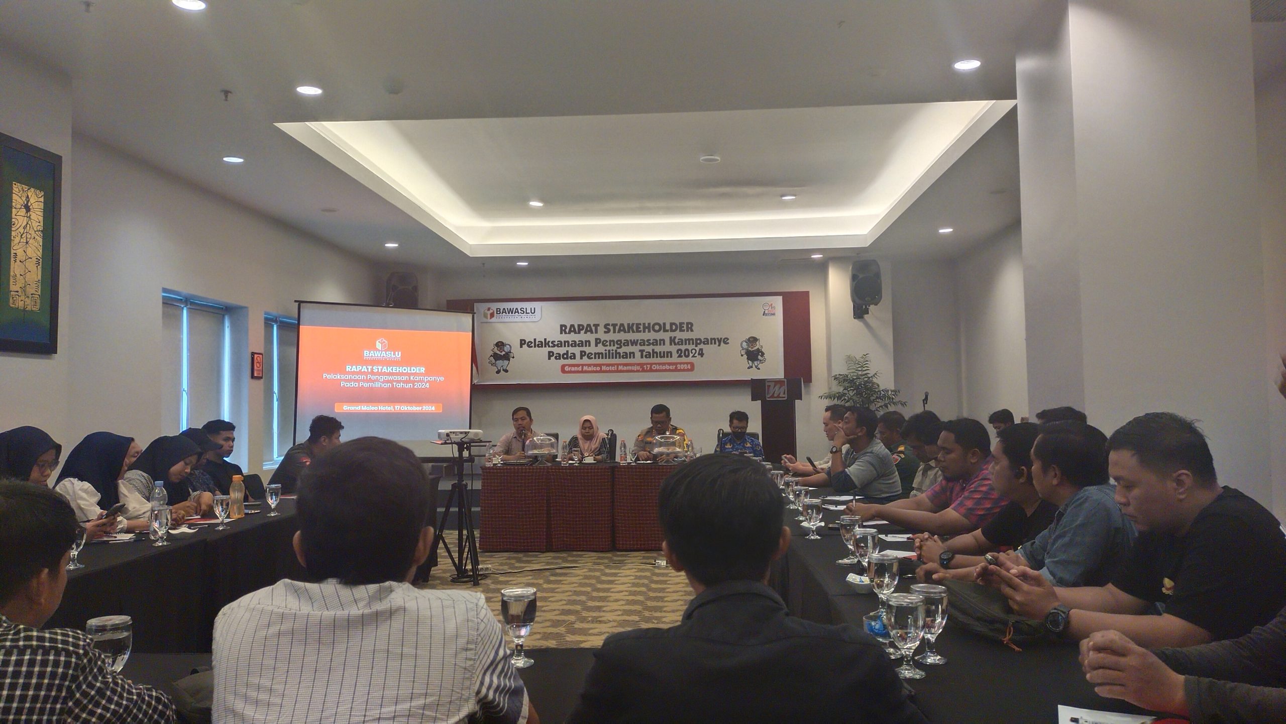 Dalam Rapat Stakeholder pelaksanaan pengawasan Kampanye pada pemilihan tahun 2024z dihadiri langsung oleh oleh Ketua Bawaslu Mamuju, Ketua KPU Mamuju, Kapolresta Mamuju, Kejari, Panwascam, serta dua perwakilan dari Calon Bupati Mamuju dari nomor urut 1 dan 2.