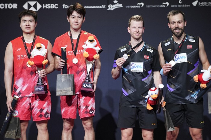 Ganda putra nomor satu dunia Liang Weikeng/Wang Chang menegaskan dominasi negeri Tirai Bambu. Liang/Wang menang straight game atas ganda putra tuan rumah Kim Astrup/Anders Skaarup Rasmussen 21-18, 21-17.