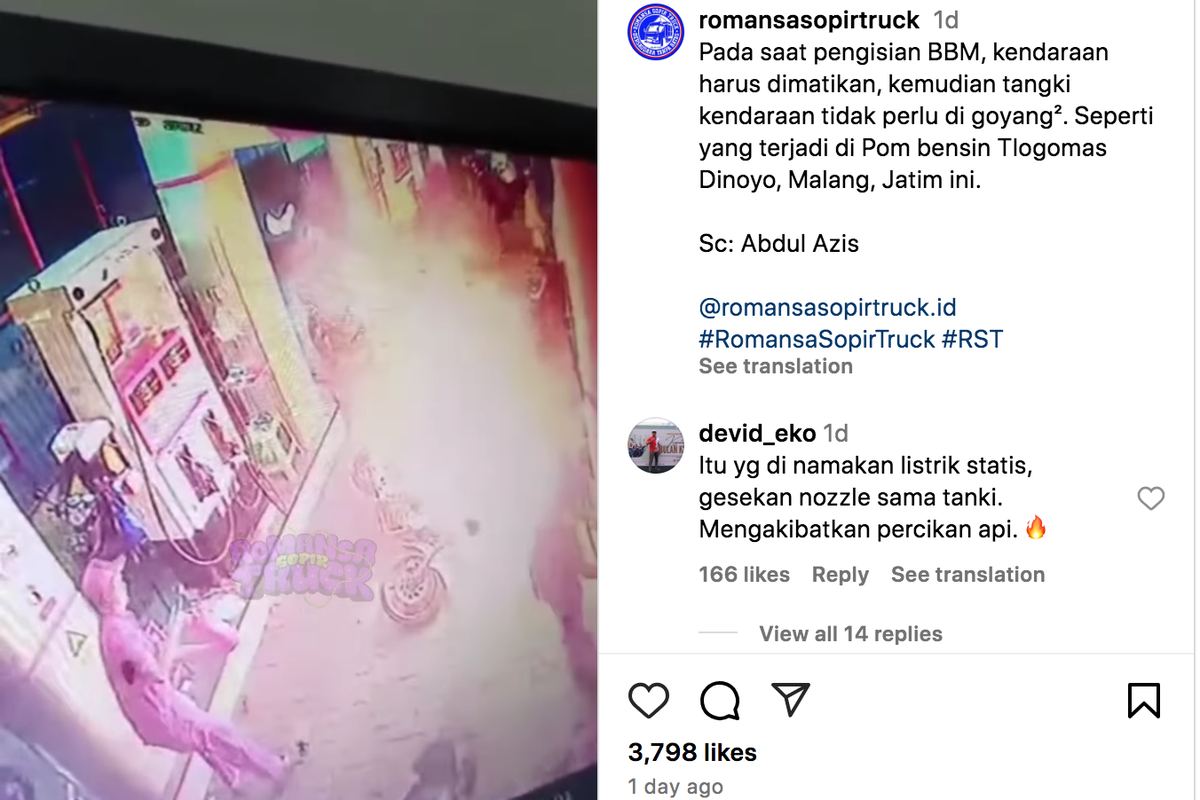Hal tersebut sangat keliru dan justru meningkatkan kemungkinan terjadinya gesekan antara nozzle dengan lubang tangki BBM. Gesekan sekecil apapun, bisa memicu listrik statis, hingga timbulnya api.