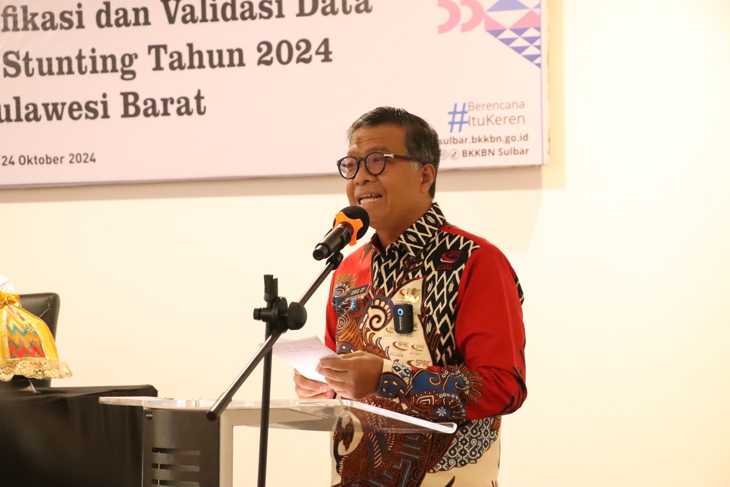 MAMUJU, RAKYATSULBAR.COM –– Sekretaris Daerah Provinsi Sulawesi Barat (Sulbar) Muhammad Idris membuka Diseminasi Hasil Verifikasi dan Validasi Data Keluarga Berisiko Stunting Tahun 2024 di Provinsi Sulawesi Barat berlangsung di Hotel Matos Mamuju, Kamis (24/10/24).
