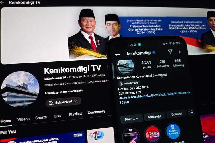 Selain akun Instagram, Kementerian Komunikasi dan Digital juga sudah menanggalkan singkatan “Kominfo” dari nama saluran YouTube.