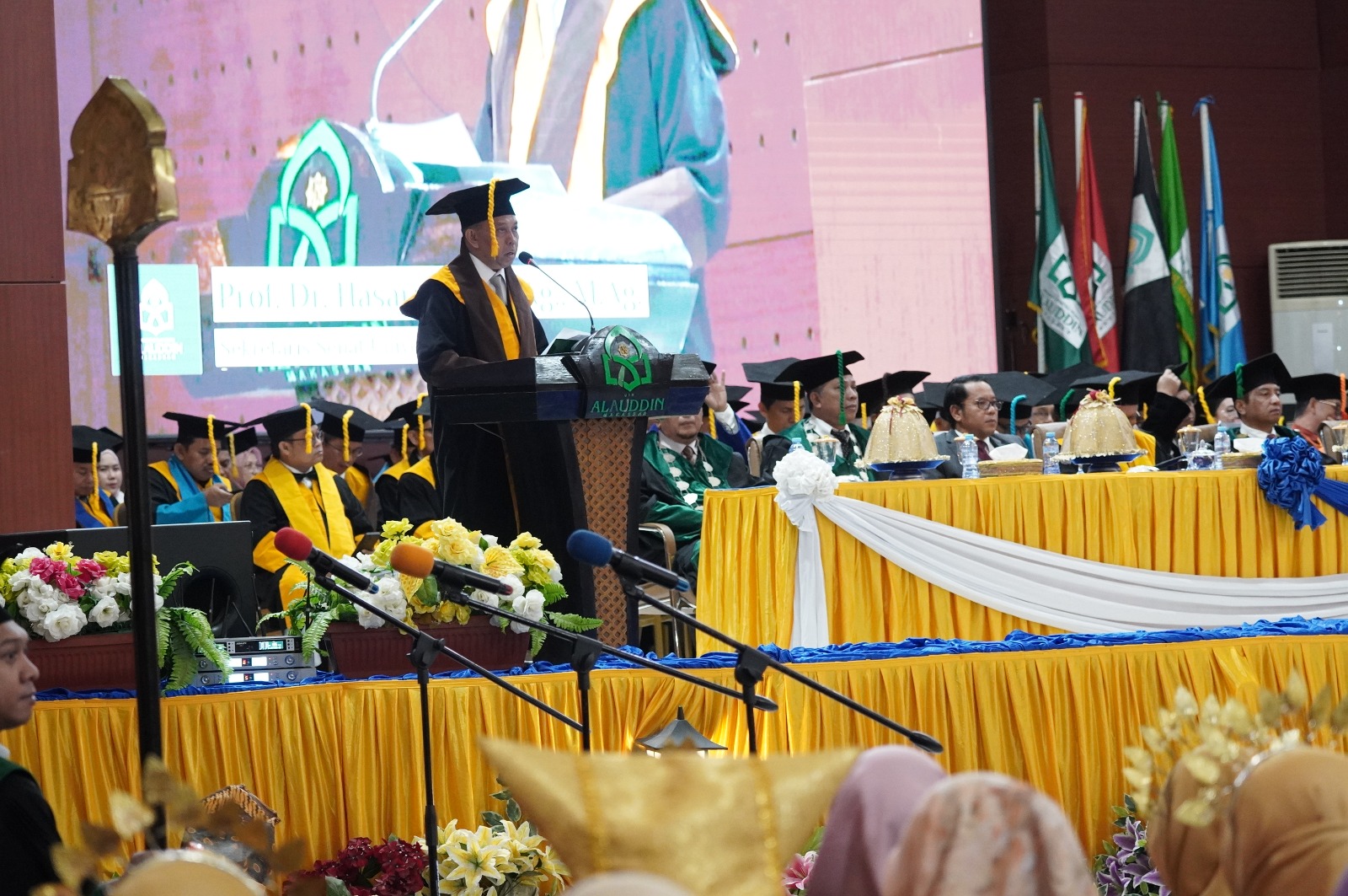 Hal ini disampaikan oleh Rektor UIN Alauddin, Prof. Hamdan Juhannis, dalam Sidang Senat Terbuka Luar Biasa yang berlangsung di Auditorium Kampus II, Senin (11/11/24).