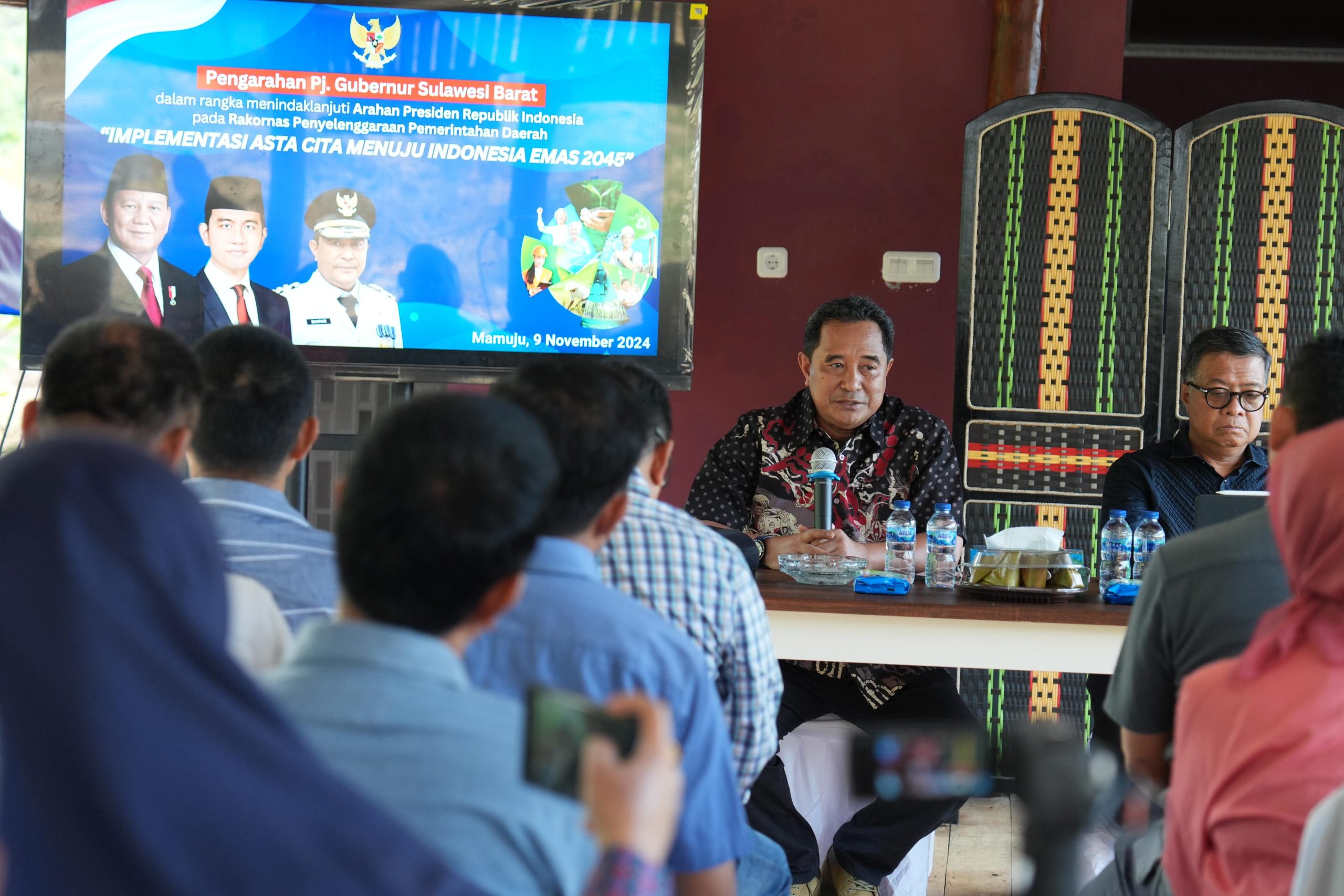 MAMUJU, RAKYATSULBAR.COM — Dalam rangka menindaklanjuti arahan Presiden RI Prabowo Subianto pada Rapat Koordinasi Nasional Penyelenggaraan Pemerintahan Daerah, Penjabat Gubernur Provinsi Sulawesi Barat memberikan arahan kepada OPD di Taman Kebun Hortikultura Rujab Gubernur Sulbar, Sabtu (9/11/24).