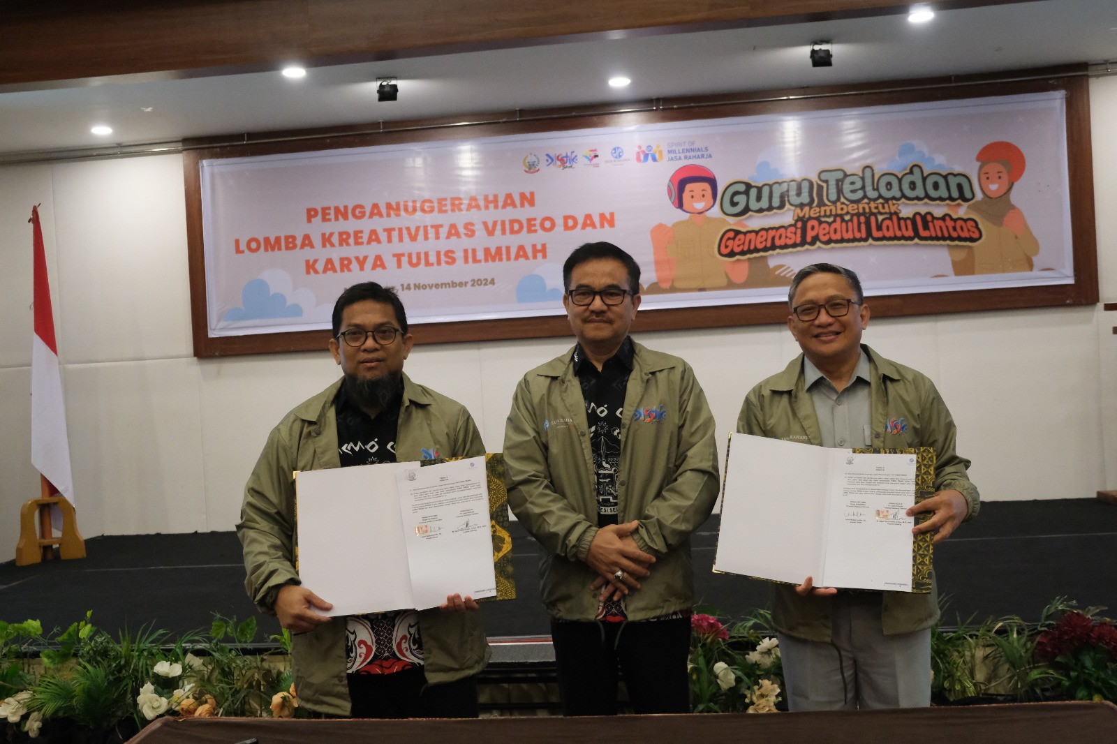 MAKASSAR, RAKYATSULBAR.COM – Dalam upaya mencegah kecelakaan lalu lintas dirangkaikan dengan Peringatan Hari Guru Nasional 2024, PT Jasa Raharja Cabang Sulawesi Selatan, dalam hal ini Spirit of Millennials Jasa Raharja Sulsel, berkolaborasi dengan Dinas Pendidikan Provinsi Sulawesi Selatan menggelar Penganugerahan Lomba Konten Video dan Karya Tulis Ilmiah dengan Sub Tema: Keselamatan lalu lintas dengan tujuan menciptakan budaya tertib berlalu lintas. Acara ini digelar di Hotel Claro, pada Hari Rabu, 14 November 2024.