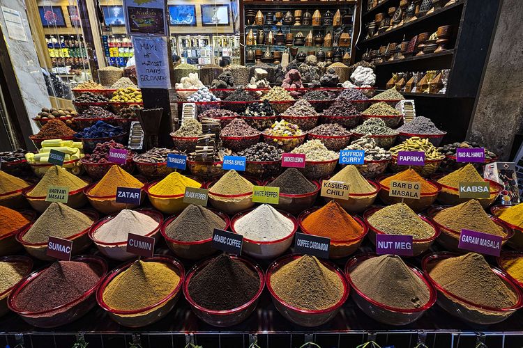Memasuki Spice Souk, pengunjung disambut oleh aroma rempah-rempah yang menggoda. Lorong-lorong sempit yang penuh warna ini menawarkan berbagai jenis rempah, bumbu masakan, dan herbal yang ditata dengan sangat rapi.