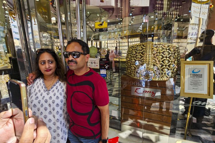 Setelah puas menjelajahi Spice Souk, perjalanan dilanjutkan ke Gold Souk yang terletak tidak jauh dari sana. Lorong-lorong di Gold Souk lebih lebar dan dipenuhi dengan toko-toko yang memamerkan perhiasan emas yang berkilauan.