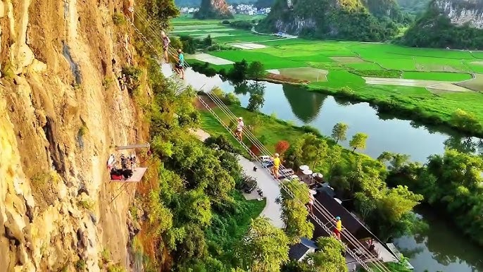 Via ferrata Tianti membentang sepanjang 168 meter, menempel di dinding tebing curam dengan ketinggian mencapai 1.524 meter. Jalur ini dilengkapi pegangan tangan baja, pijakan kaki, serta tali pengaman untuk memudahkan para pendaki menjelajahi tebing-tebing terjal. Tidak heran, lebih dari 1.200 wisatawan memadati atraksi ini setiap harinya, bahkan sempat terjadi “kemacetan manusia” di udara.