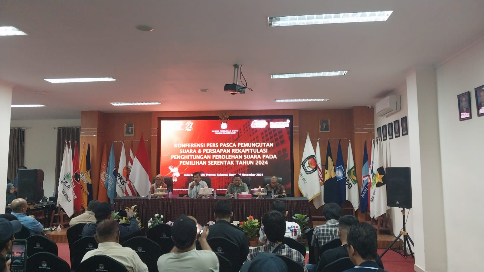 MAMUJU, RAKYATSULBAR.COM – Komisi Pemilihan Umum (KPU) Sulawesi Barat (Sulbar) menggelar koferensi pers pasca pemungutan suara persiapan rekpitulasi penghitungan perolehan suara pada pemilihan serentak 2024 di Aula Kantor Komisi Pemilihan Umum (KPU) Sulawesi barat, Kamis (28/11/2024).