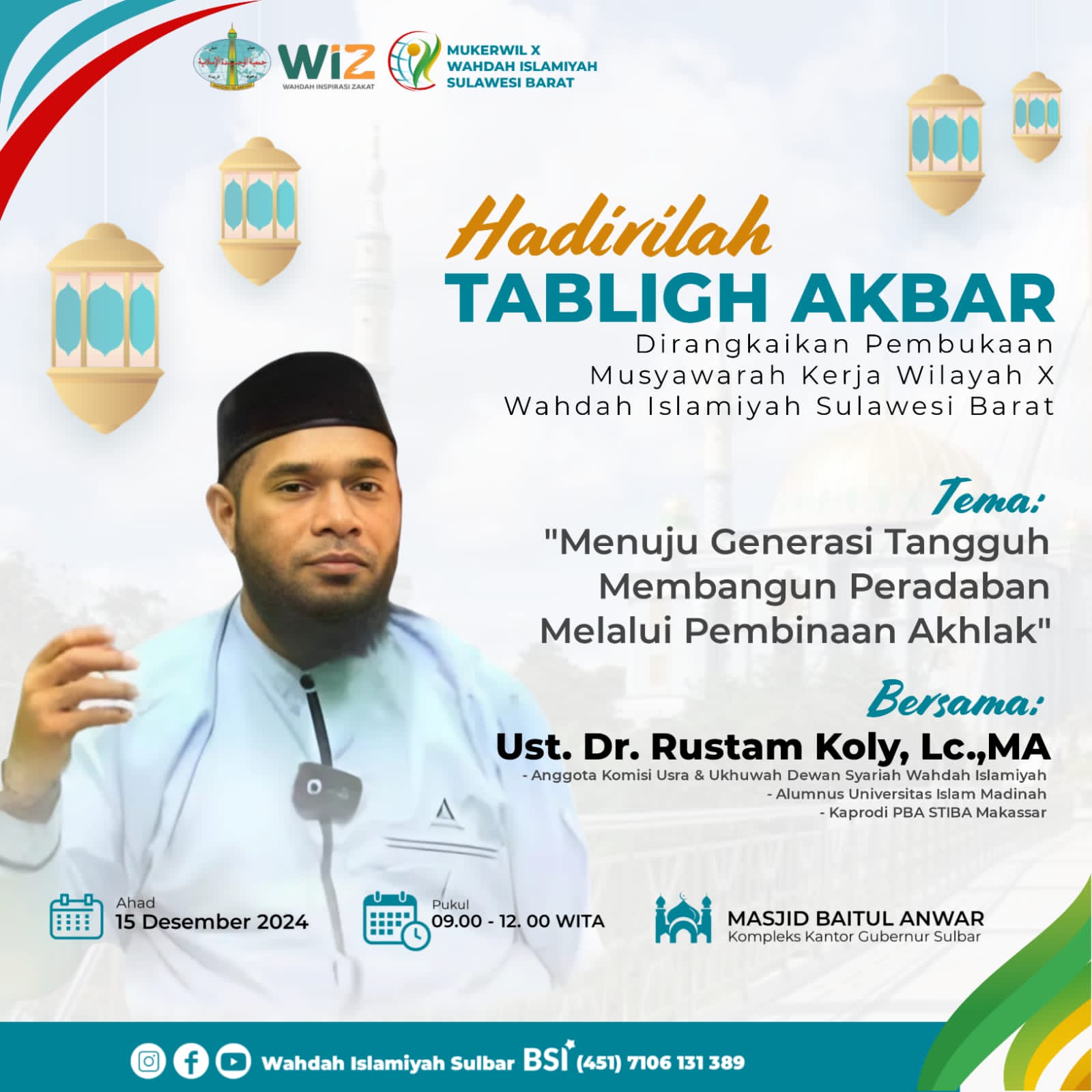 Tabligh Akbar itu dilaksanakan pada hari Ahad, 15 Desember 2024 M/ 13 Jumadil Akhir 1446H pukul 08.00 – 12.00 Wita mendatang.