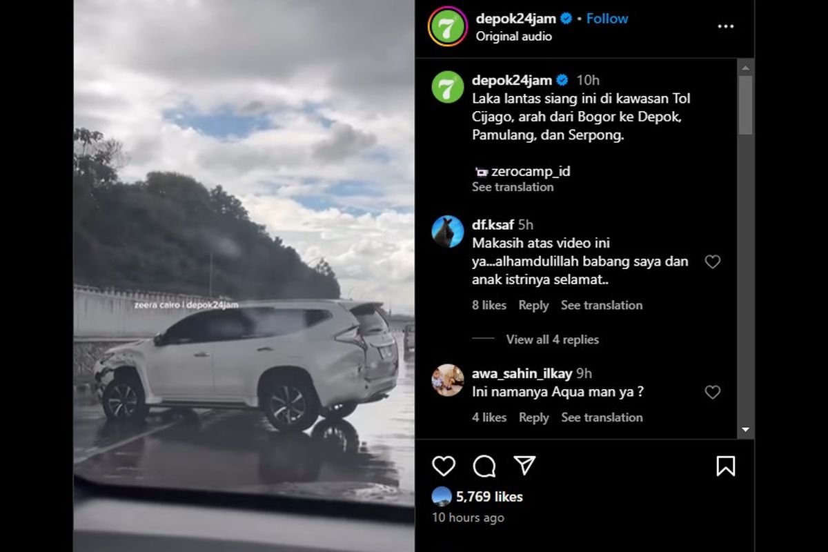 Dalam video yang diunggah oleh akun Instagram @depok24jam pada Minggu (5/1/2025), terlihat Mitsubishi Pajero Sport terbalik di tengah jalan setelah menabrak kendaraan lain, yang diketahui adalah Honda BR-V. Kecelakaan ini terjadi di kawasan Tol Cijago, arah dari Bogor ke Depok, Pamulang, dan Serpong.