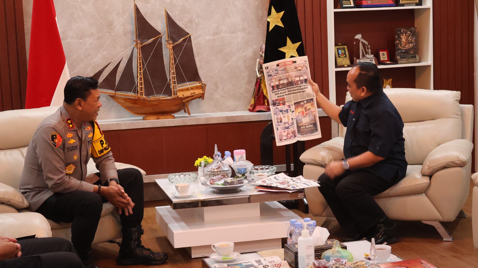Rombongan Direksi Harian Rakyat Sulsel yakni Direktur Utama Harian Rakyat Sulsel Imran Umar, Direktur Daswar M Rewo, Komisaris Rakyatsulsel.co Hj. Yasnidar Yasir, Wakil Direktur Lukman Maddu dan Manager Iklan Abd Rahim, hadir dan diterima langsung oleh Irjen Pol Yudhiawan didampingi Kabid Humas Polda Sulsel Kombes Pol Didik Supranoto dan perwakilan Direktorat Intelkam Polda Sulsel.