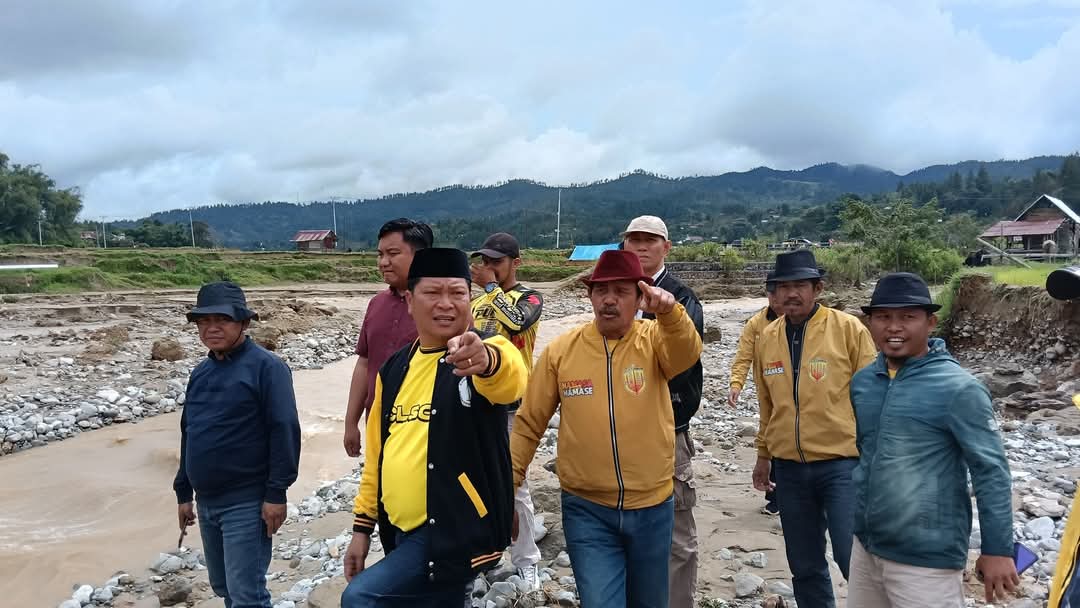 MAMASA, RAKYATSULBAR.COM — Bupati terpilih Kabupaten Mamasa, Welem Sambolangi meninjau lokasi banjir banjir di Kecamatan Nosu.
