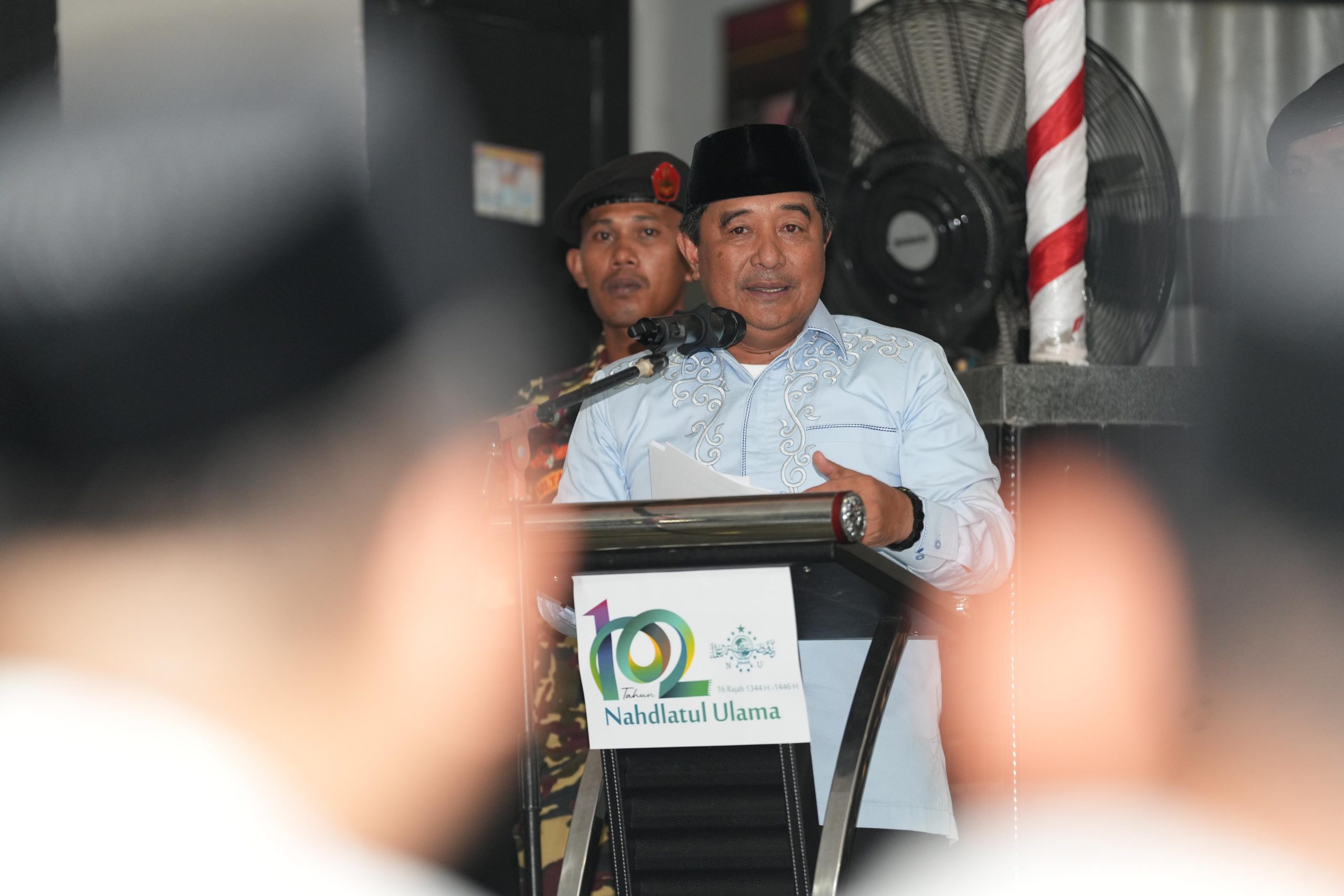 MAMUJU, RAKYATSULBAR.COM — Penjabat Gubernur Provinsi Sulawesi Barat, Bahtiar Baharuddin, menghadiri Peringatan Isra Mi’raj Nabi Muhammad SAW, Istighosah dan Doa Bersama dalam rangka Hari Lahir Nahdlatul Ulama (NU) ke 120.