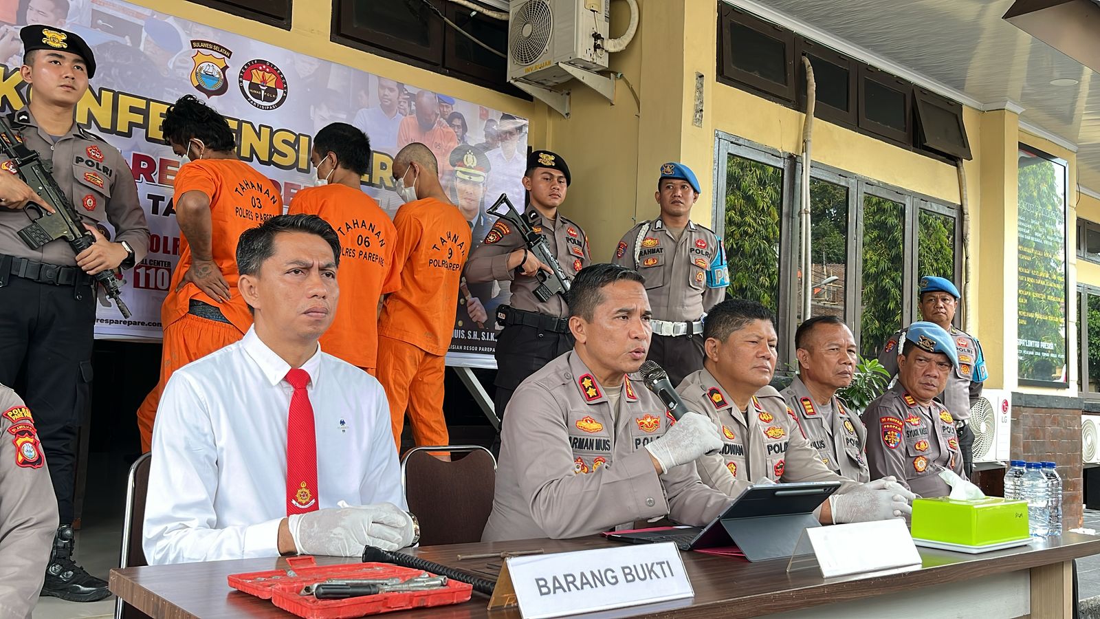 Dalam kesempatan tersebut, Kapolres Parepare AKBP Arman Muis mengungkapkan bahwa pihaknya berhasil mengamankan tiga orang pelaku dari kasus kejahatan pencuroan dengan kasus diperberat.