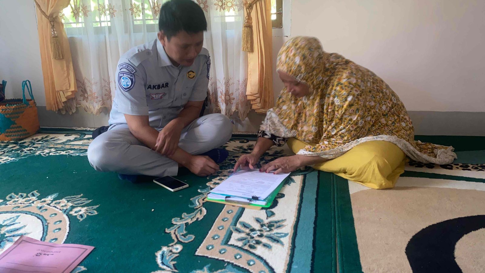 Setelah mendapat informasi dari Petugas Jasa Raharja Kabupaten Barru bersama dengan petugas Jasa Raharja Polman bergerak cepat mendatangi rumah keluarga korban Wahyu Joko Wibowo di Desa Bumiayu Kecamatan Wonomulyo, Kabupaten Polman.