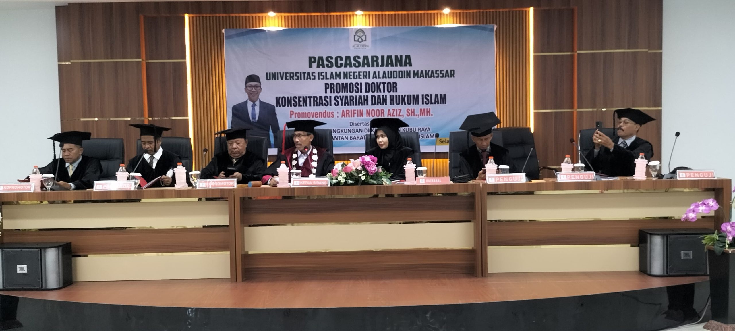 Sidang terbuka itu dipimpin langsung oleh Direktur Pascasarjana UIN Alauddin, Prof. Dr. Abustani Ilyas, MA, bersama sejumlah tim penguji.