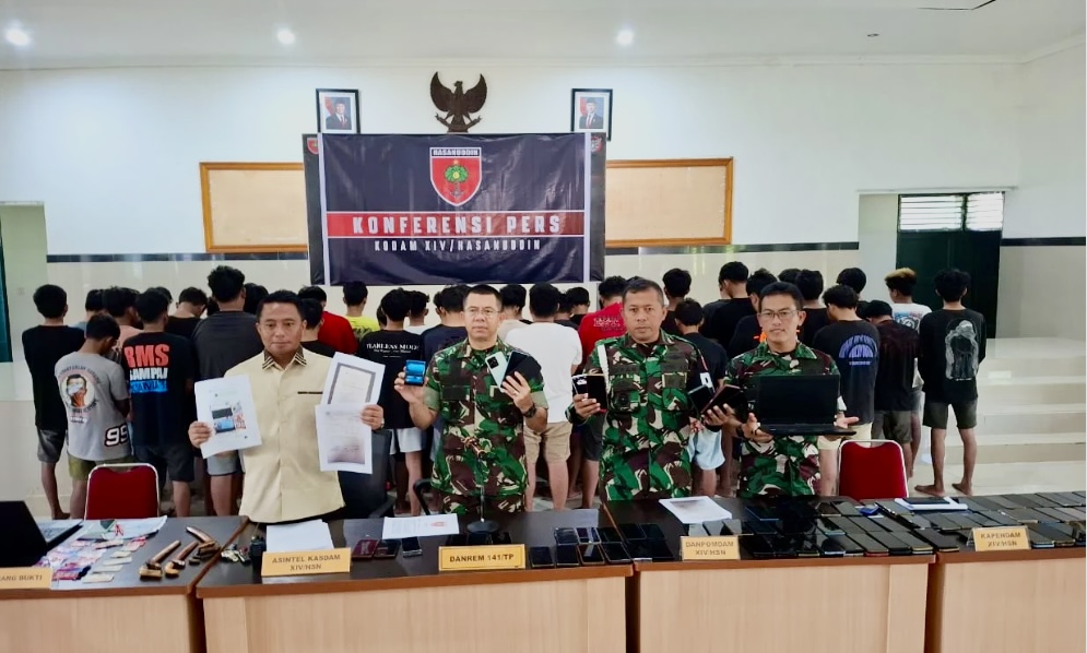 Atas dasar itulah, tim gabungan TNI langsung bergerak melakukan penggerebekan di salah satu rumah berukuran besar di Kabupaten Sidrap. Dari dalam rumah itu ada 40 terduga pelaku berhasil diamankan dan langsung digelandang ke Markas Kodam XIV Hasanuddin.
