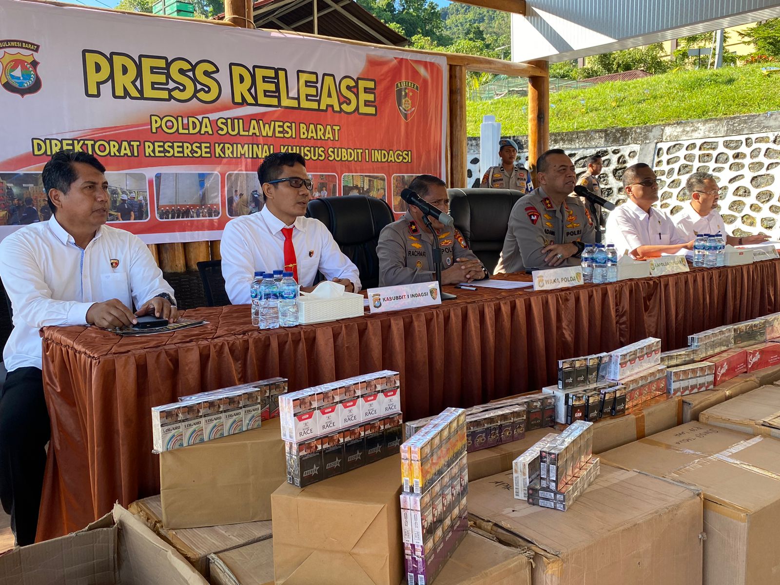 MAMUJU, RAKYATSULBAR.COM –– Kapolda Sulbar Irjen Pol. Adang Ginanjar, pimpin konferensi pers pengungkapan kasus rokok ilegal.