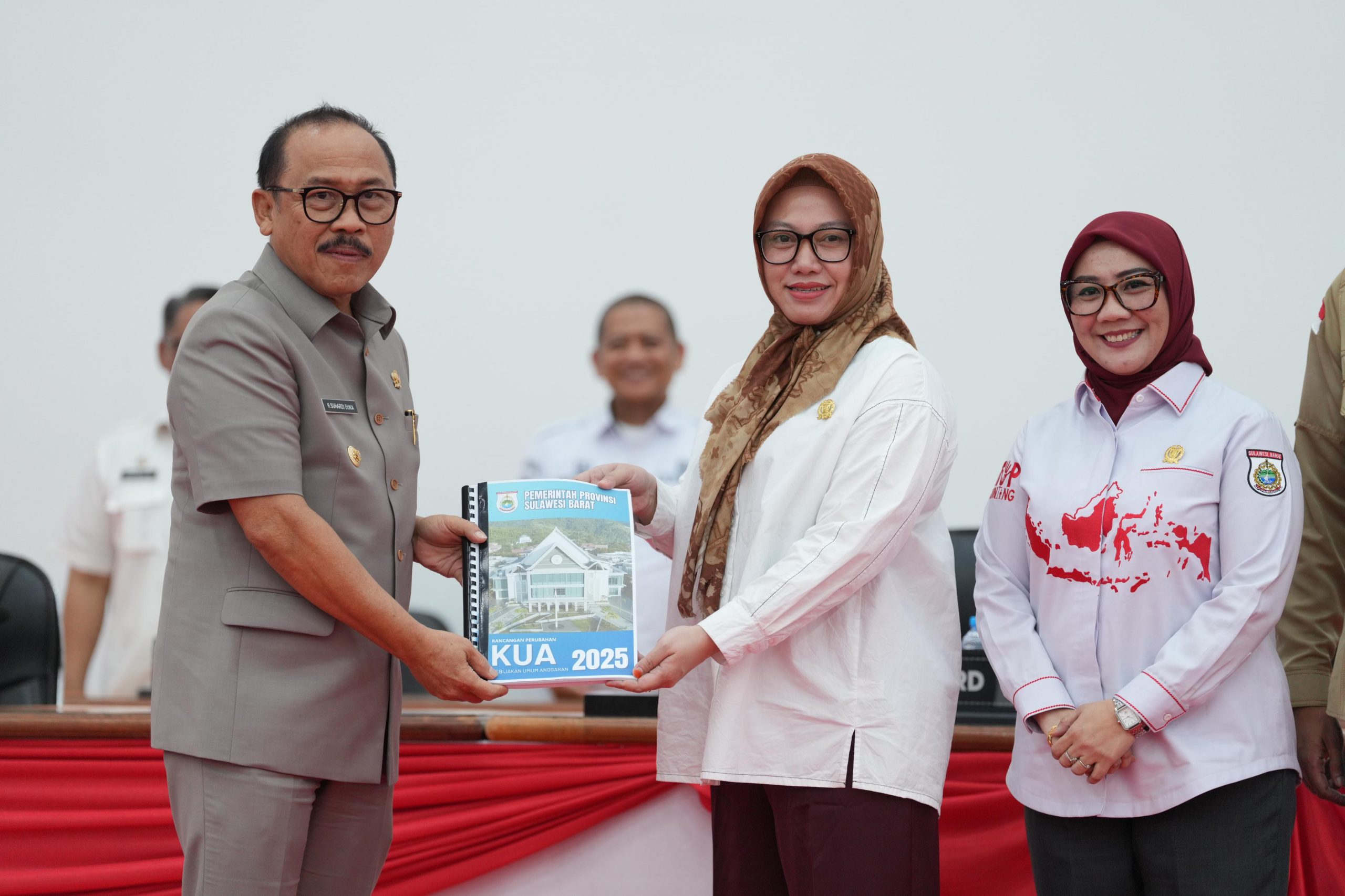 Penyerahan rancangan KUA-PPAS Perubahan APBD 2025 sekaligus ekspose KUA PPAS APBD 2026 dan Laporan Realisasi Semester I APBD 2025 diserahkan langsung Gubernur, Suhardi Duka dan diterima oleh Ketua DPRD Sulbar, Amalia Fitri Aras.