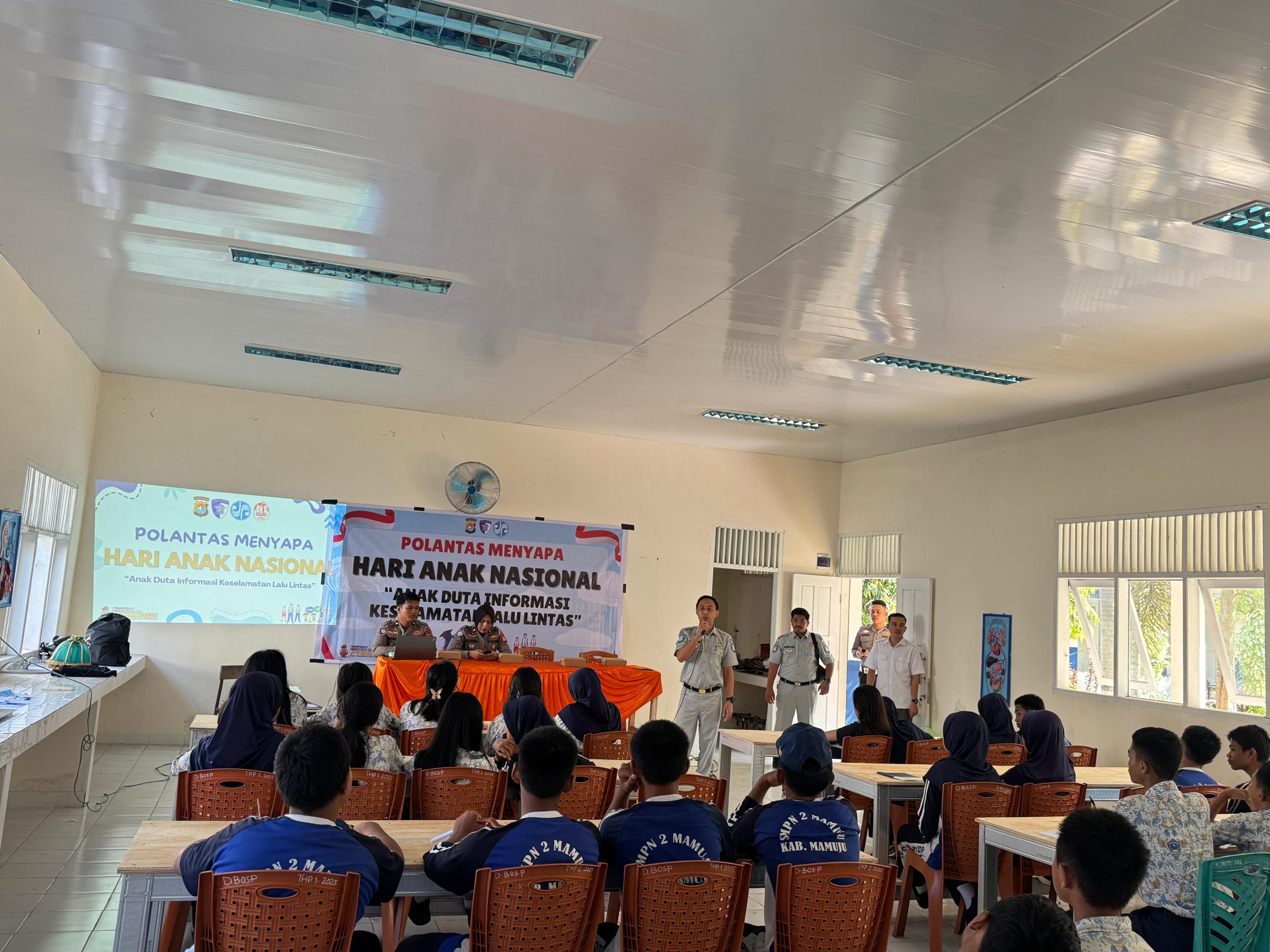 MAMUJU, RAKAYATSULBAR.COM – Dalam rangka memperingati Hari Anak Nasional, Subdit Kamsel Ditlantas Polda Sulawesi Barat berkolaborasi dengan PT Jasa Raharja Cabang Mamuju menggelar kegiatan “Polantas Menyapa” di SMPN 2 Mamuju, Kamis (24/7/25).