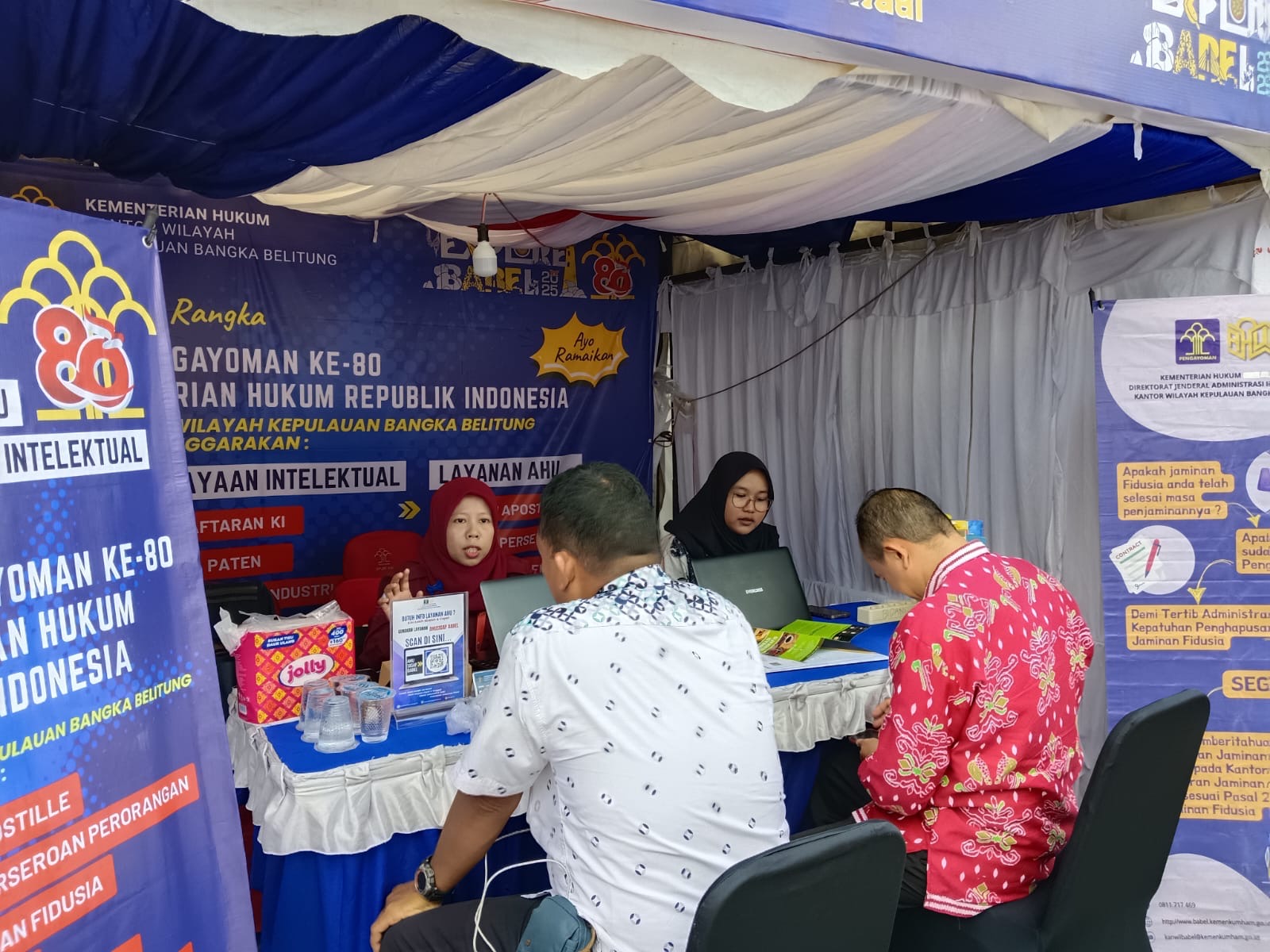 PANGKALPINANG, RAKYATSULBAR. COM – Dalam rangka mendorong pendaftaran merek dan legalitas usaha bagi pelaku UMKM, Kantor Wilayah Kementerian Hukum Kepulauan Bangka Belitung turut berpartisipasi dalam kegiatan “Explore Babel 2025” yang diselenggarakan oleh Bank Indonesia. Acara ini berlangsung di Alun-alun Taman Merdeka, Pangkalpinang, pada 25 hingga 27 Juli 2025.