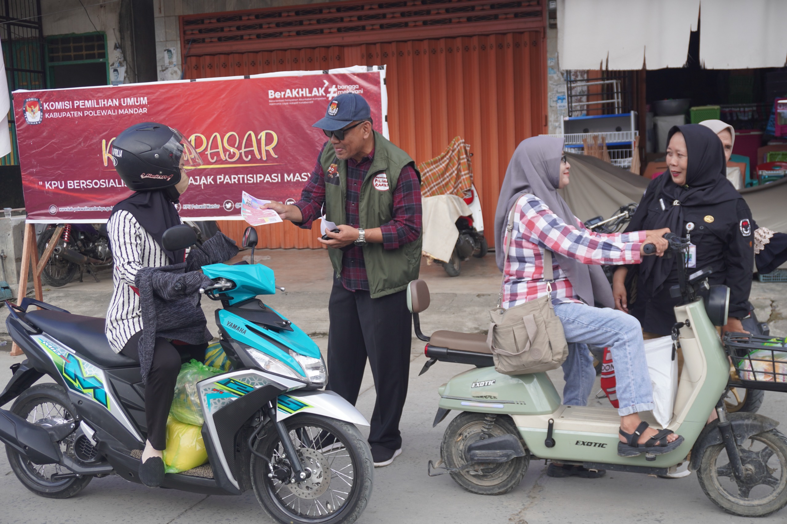 Kegiatan Sosialisasi Pendidikan Pemilih bertajuk “KPU BerPASAR” dilaksanakan dengan menyasar pasar-pasar tradisional sebagai lokasi pelaksanaan sosialisasi, mengingat pengunjung dan pedagang yang biasanya akan selalu meramaikan pasar-pasar tradisional terutama bertepatan dengan hari pasar di sejumlah pasar tradisional yang ada di wilayah Kabupaten Polewali Mandar.