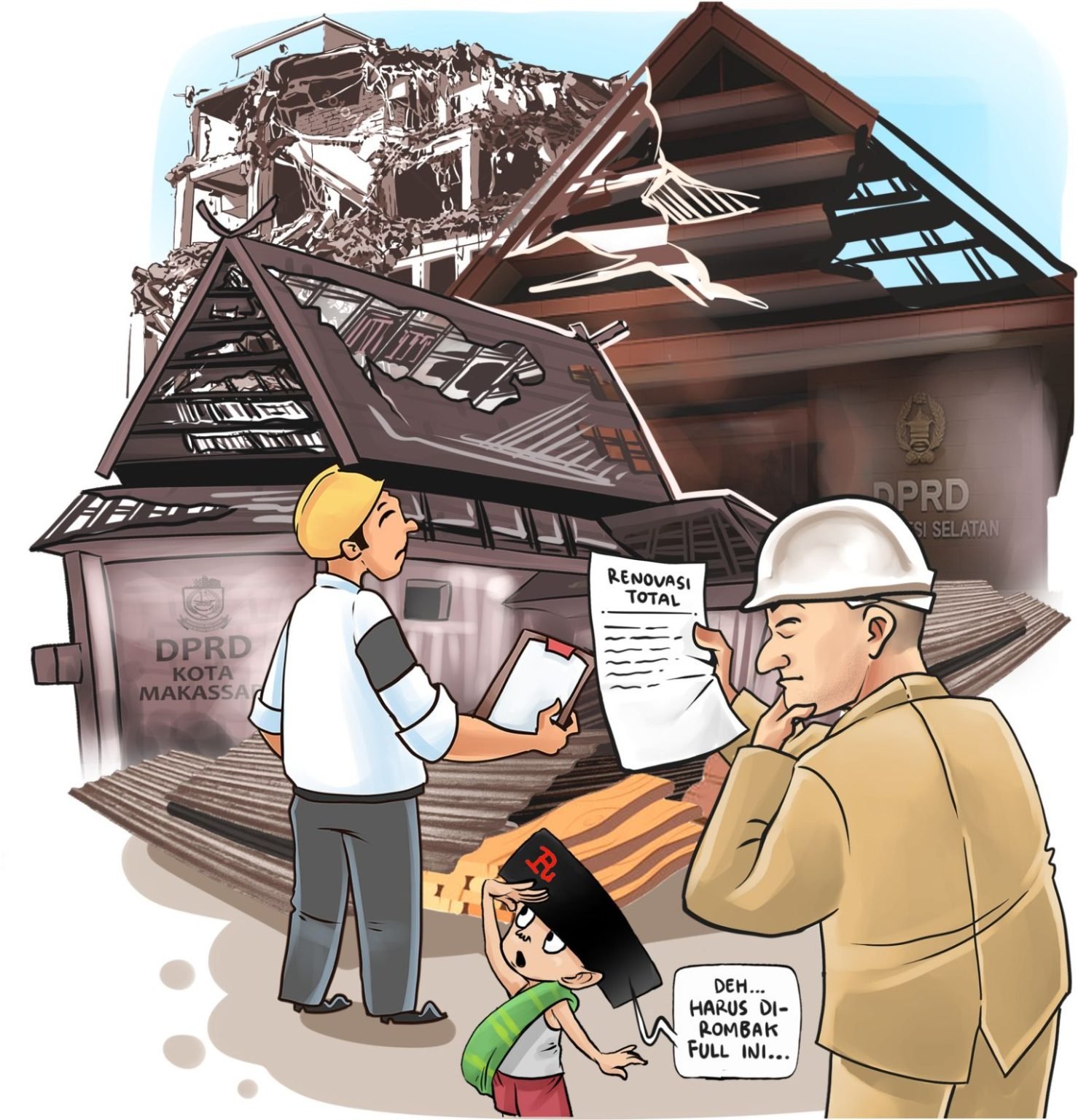 MAKASSAR, RAKYATSULBAR.COM — Kementerian Pekerjaan Umum merekomendasikan untuk merenovasi total dua gedung parlemen yang dibakar massa dalam demonstrasi yang berakhir rusuh akhir Agustus lalu. Struktur sisa bangunan yang ludes terbakar dinilai tidak akan bertahan lama bila hanya direnovasi sebagian. Kementerian telah menyiapkan anggaran untuk membangun kembali dua gedung wakil rakyat itu. Nilainya ditaksir akan mencapai ratusan miliar rupiah.