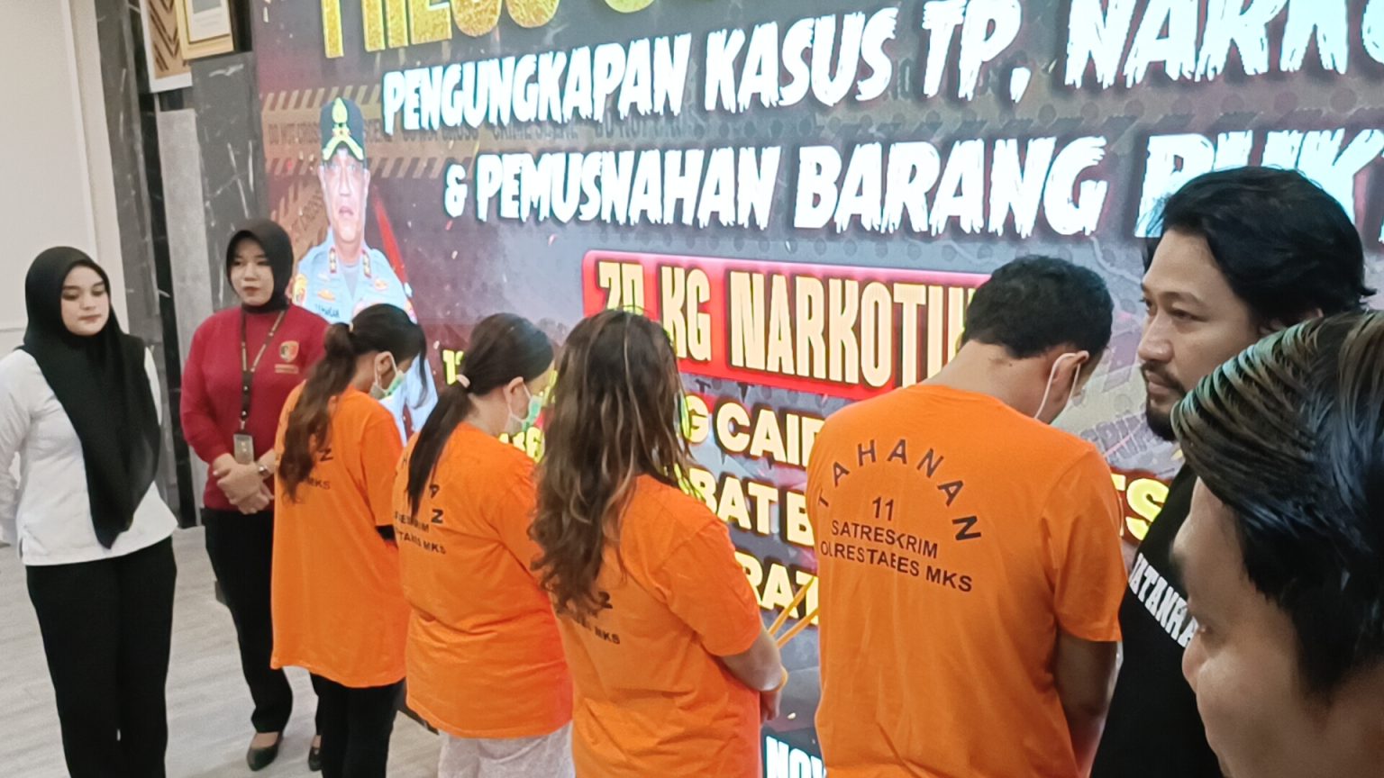 Keempat tersangka dalam kasus ini sudah diamankan di Mapolrestabes Makassar. Mereka juga sempat dihadirkan di depan wartawan sambil mengenakan kaos orange bertuliskan tahanan dengan tangan terborgol saat konferensi pers di Mapolrestabes Makassar, Senin (10/11/2025).