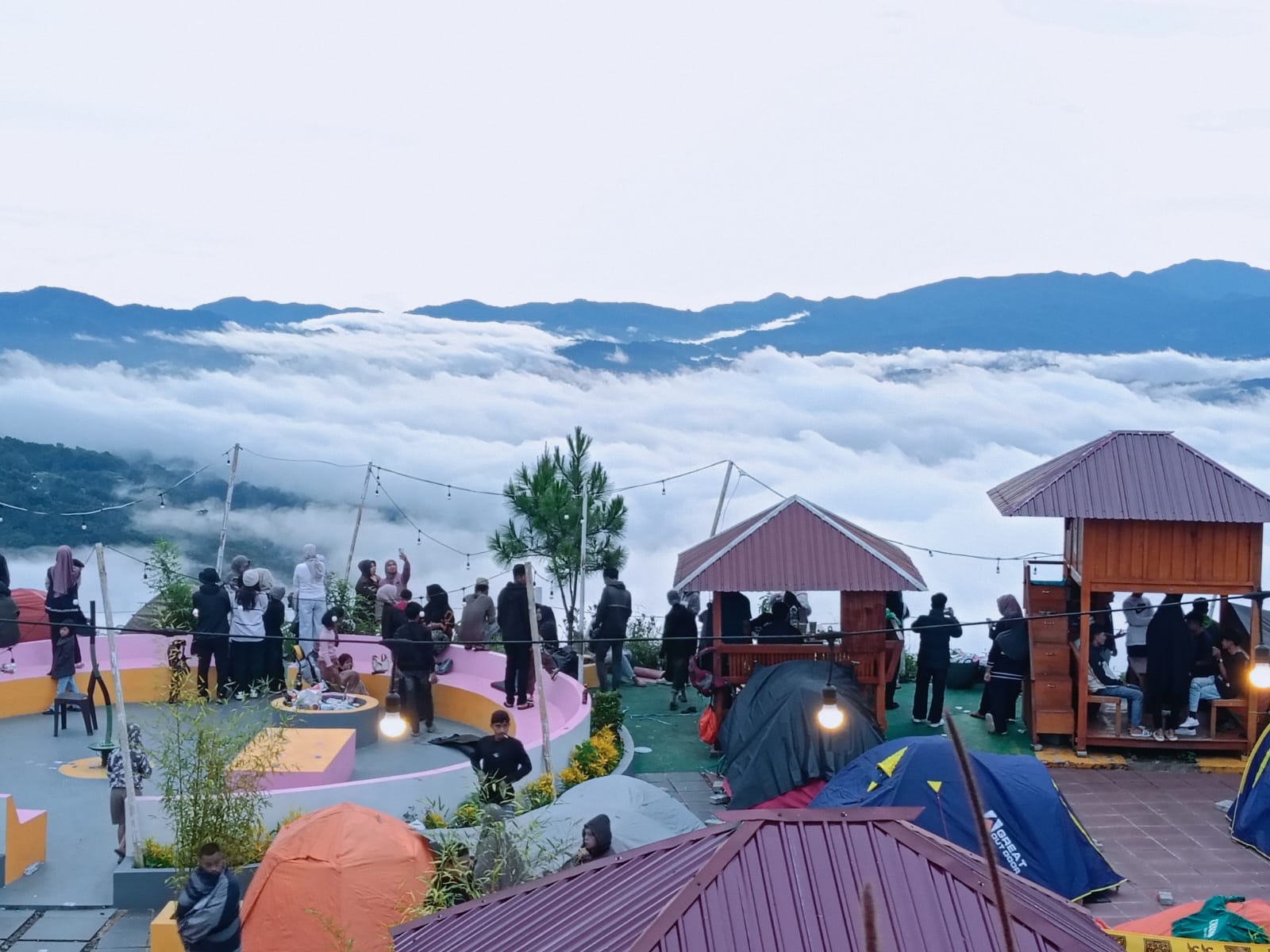 Menatap kumpulan awan putih memang sangat memanjakan mata. Satu persatu para pengunjung mulai mengabadikan momen indah itu. Jebretan kamera ponsel diarahkan kesetiap sudut awan yang datang bagai lautan.