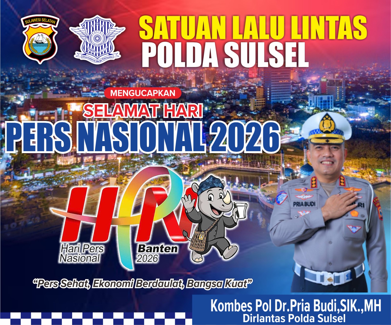 MAKASSAR, RAKYATSULBAR.COM – Menjelang peringatan Hari Pers Nasional (HPN) yang jatuh pada 9 Februari 2026, Direktur Lalu Lintas (Dirlantas) Polda Sulawesi Selatan, Kombes Pol. Dr. Pria Budi, S.I.K., M.H., memberikan apresiasi mendalam terhadap peran serta insan pers dalam pembangunan bangsa.