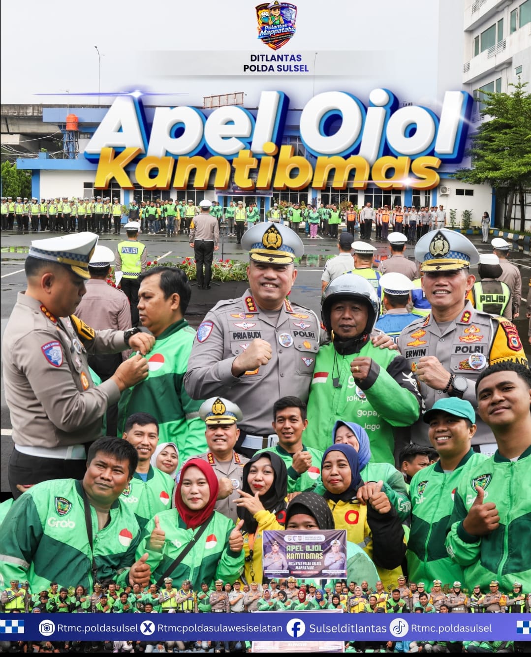 MAKASSAR, RAKYATSULBAR.COM – Direktorat Lalu Lintas (Ditlantas) Polda Sulawesi Selatan menggandeng ratusan pengemudi ojek online (ojol) dalam upaya memperkuat keamanan dan ketertiban masyarakat melalui Apel Ojol Kamtibmas yang dirangkaikan dengan sosialisasi program layanan Polantas “Mappatabe”. Kegiatan tersebut digelar di Lapangan Apel Ditlantas Polda Sulsel, Rabu (11/2/2026).