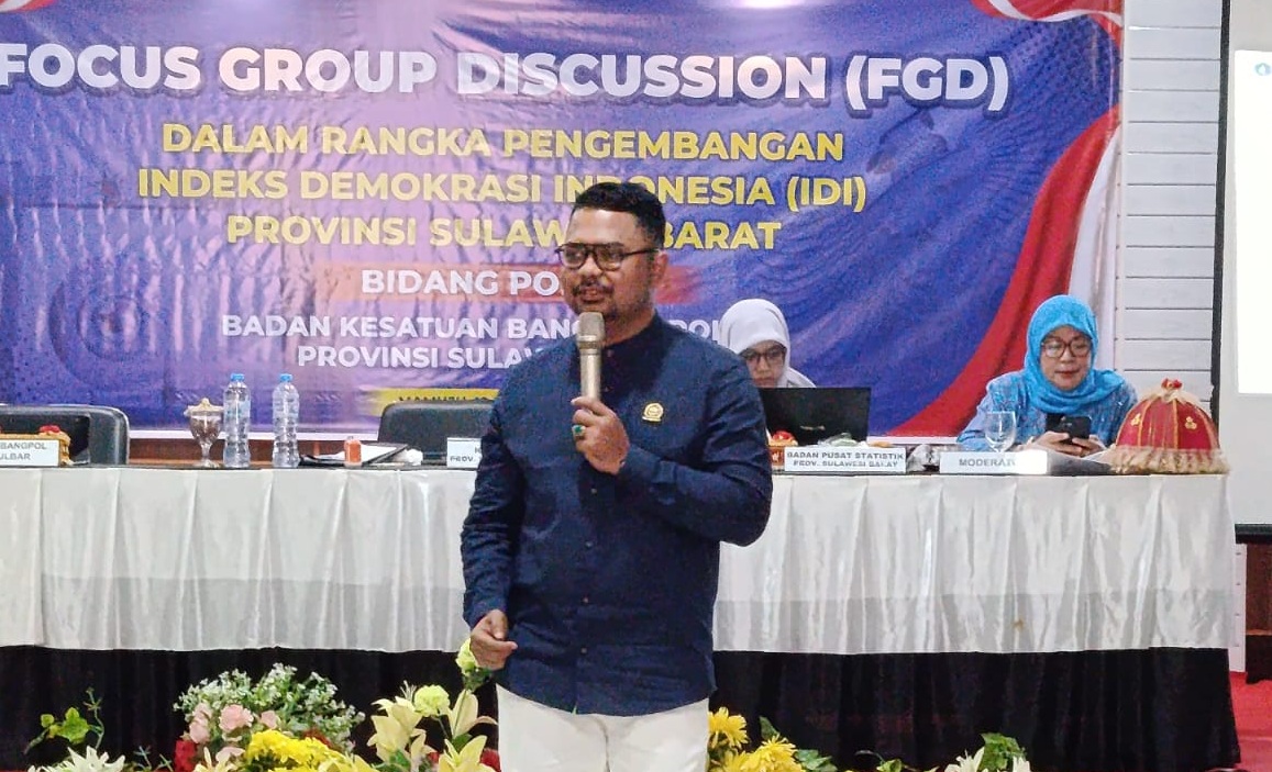 MAMUJU, RAKYATSULBAR.COM –– Pemprov Sulbar melalui Badan Kesatuan Bangsa dan Politik (Kesbangpol) Provinsi Sulawesi Barat melaksanakan kegiatan Focus Group Discussion (FGD) dalam rangka pengembangan Indeks Demokrasi Indonesia (IDI) bidang Politik, bertempat di Hotel Berkah, Kamis (12/2/26).