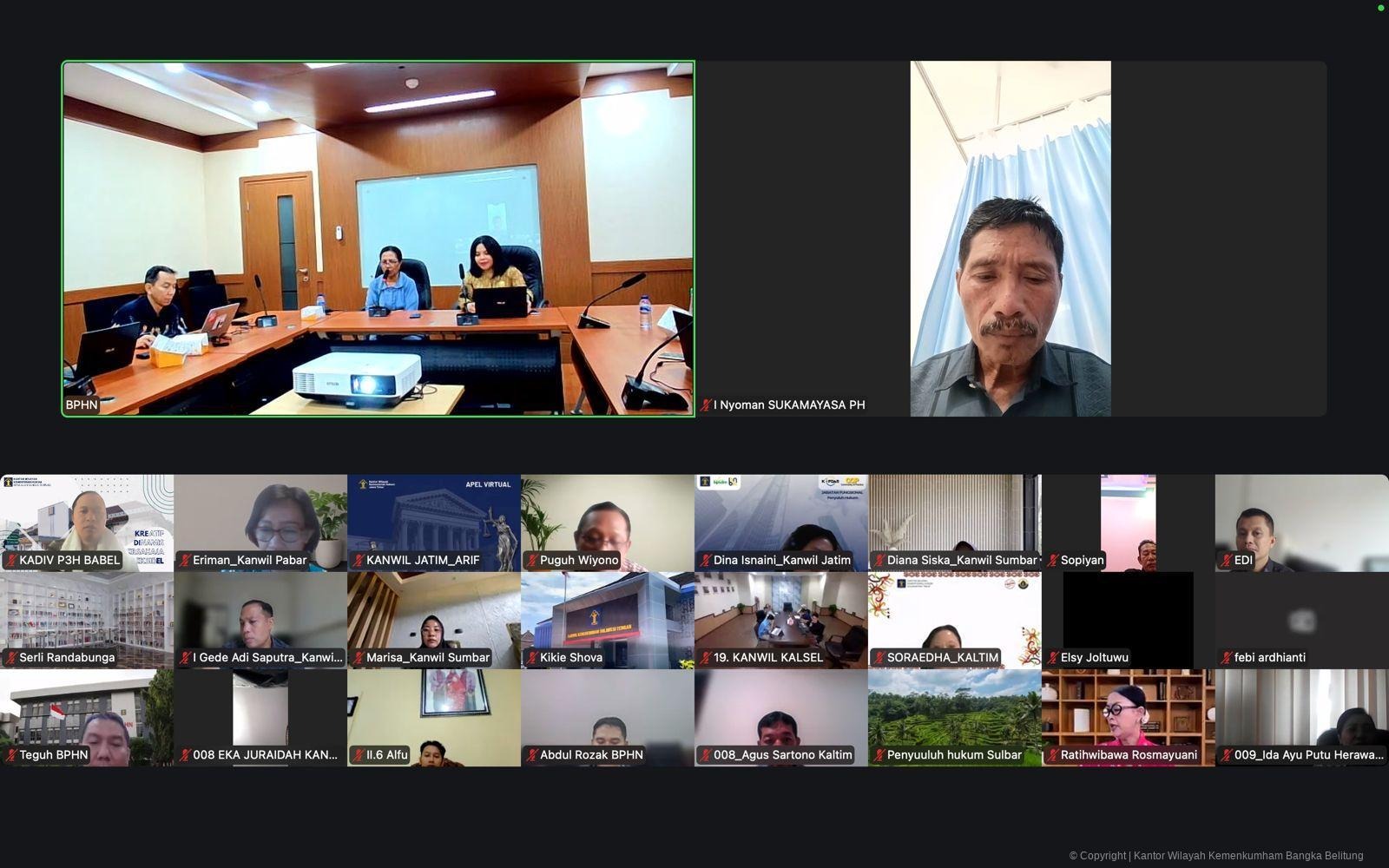 PANGKALPINANG, RAKYATSULBAR.COM – Kantor Wilayah Kementerian Hukum Kepulauan Bangka Belitung mengikuti Rapat Peta Permasalahan Hukum yang diselenggarakan secara daring melalui Zoom Meeting pada Jumat (13/02/2026). Kegiatan ini merupakan bagian dari langkah strategis dalam memperkuat sistem penyuluhan hukum berbasis data dan kebutuhan riil masyarakat di daerah.