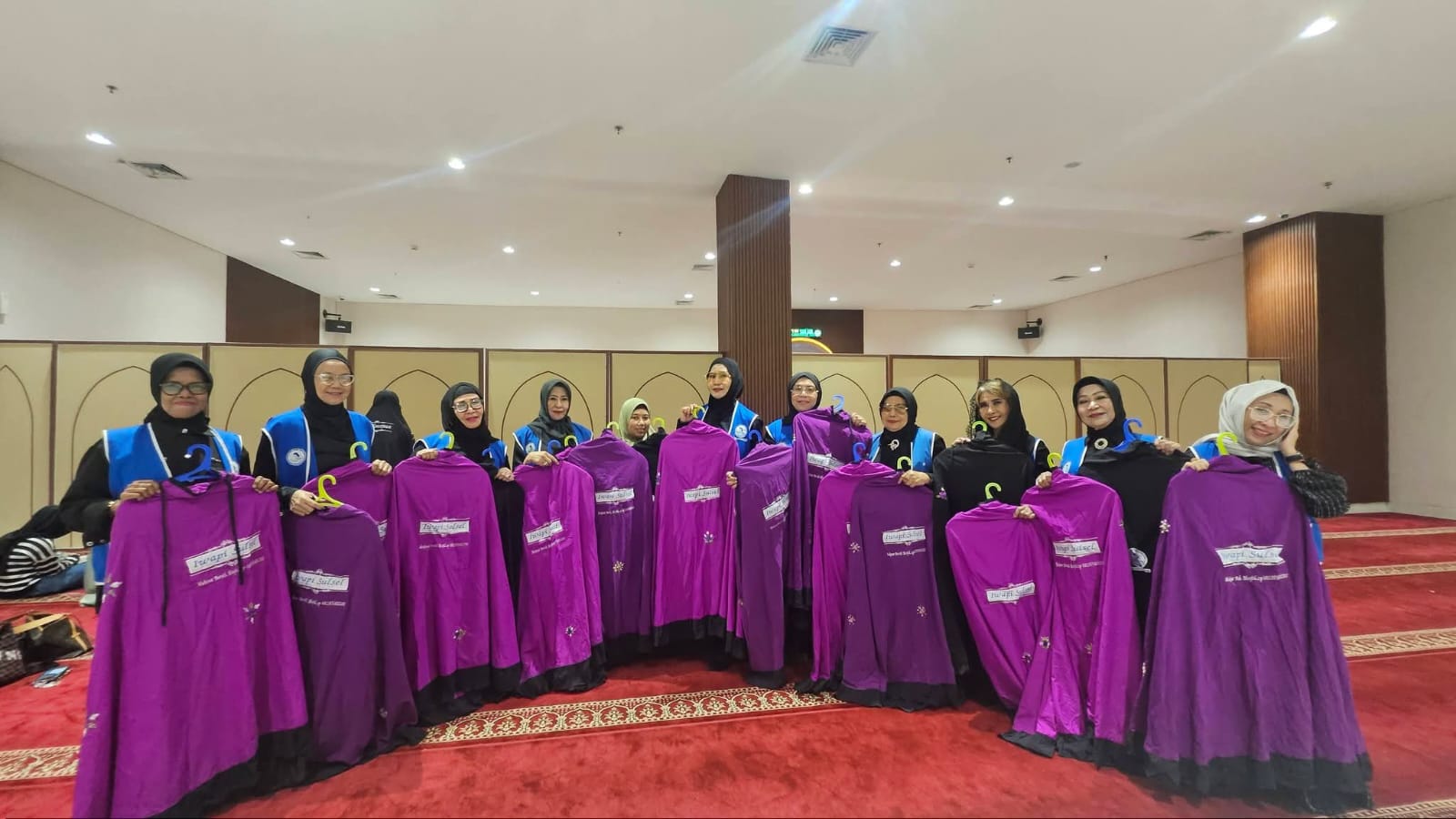 Ketua DPD IWAPI Sulsel, apt. Hj. Ainun Jariah, S.Farm., M.Kes., memimpin langsung kegiatan berbagi mukenah di Musholla TSM Makassar, Jumat (27/2/2026).