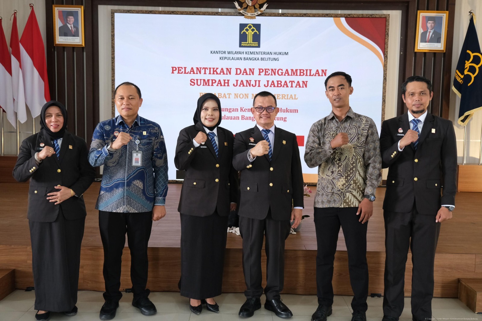 Dalam sambutannya, Kepala Kantor Wilayah Kementerian Hukum Kepulauan Bangka Belitung, Johan Manurung menyampaikan bahwa pelantikan dan pengambilan sumpah/janji jabatan merupakan momentum penting dalam perjalanan organisasi. Ia juga mengatakan kegiatan tersebut tidak hanya menjadi bagian dari proses administrasi kepegawaian, tetapi juga sebagai bentuk penguatan komitmen dan tanggung jawab dalam menjalankan amanah sebagai aparatur sipil negara.